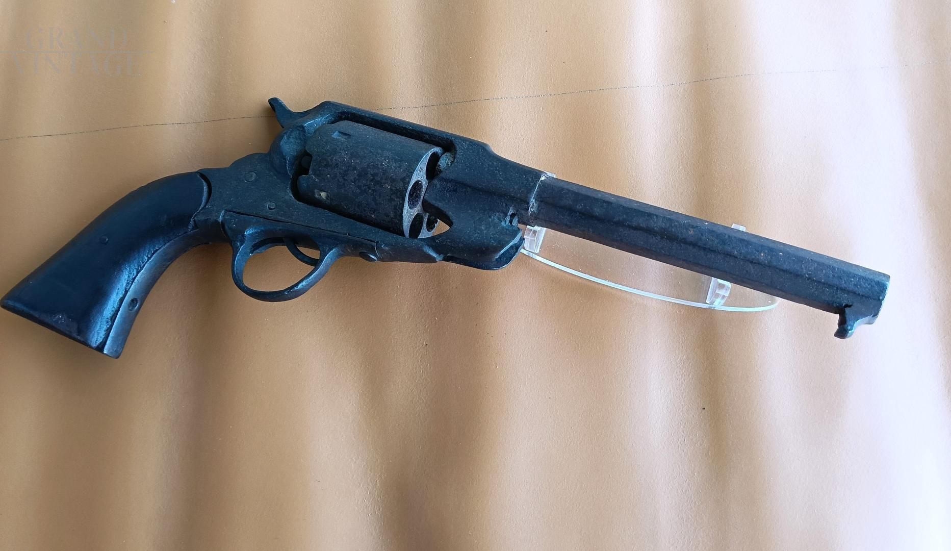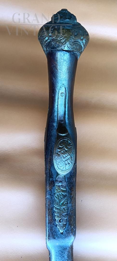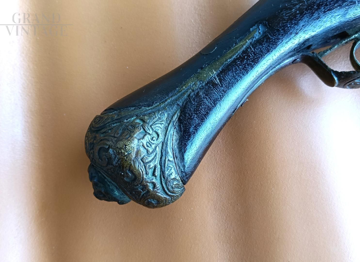 Coppia di riproduzioni di pistole antiche solamente per uso decorativo poiché prive di qualsiasi movimento funzionale allo sparo. Si tratta di riproduzioni di armi antiche: un modello tipo Colt di fine '800 USA, un modello tipo Pirata a lumello e pietra focaia del '700. Non sono funzionanti e sono mancanti di qualche pezzo, come da foto. Si utilizzavano negli anni '60 in esposizioni rievocative.