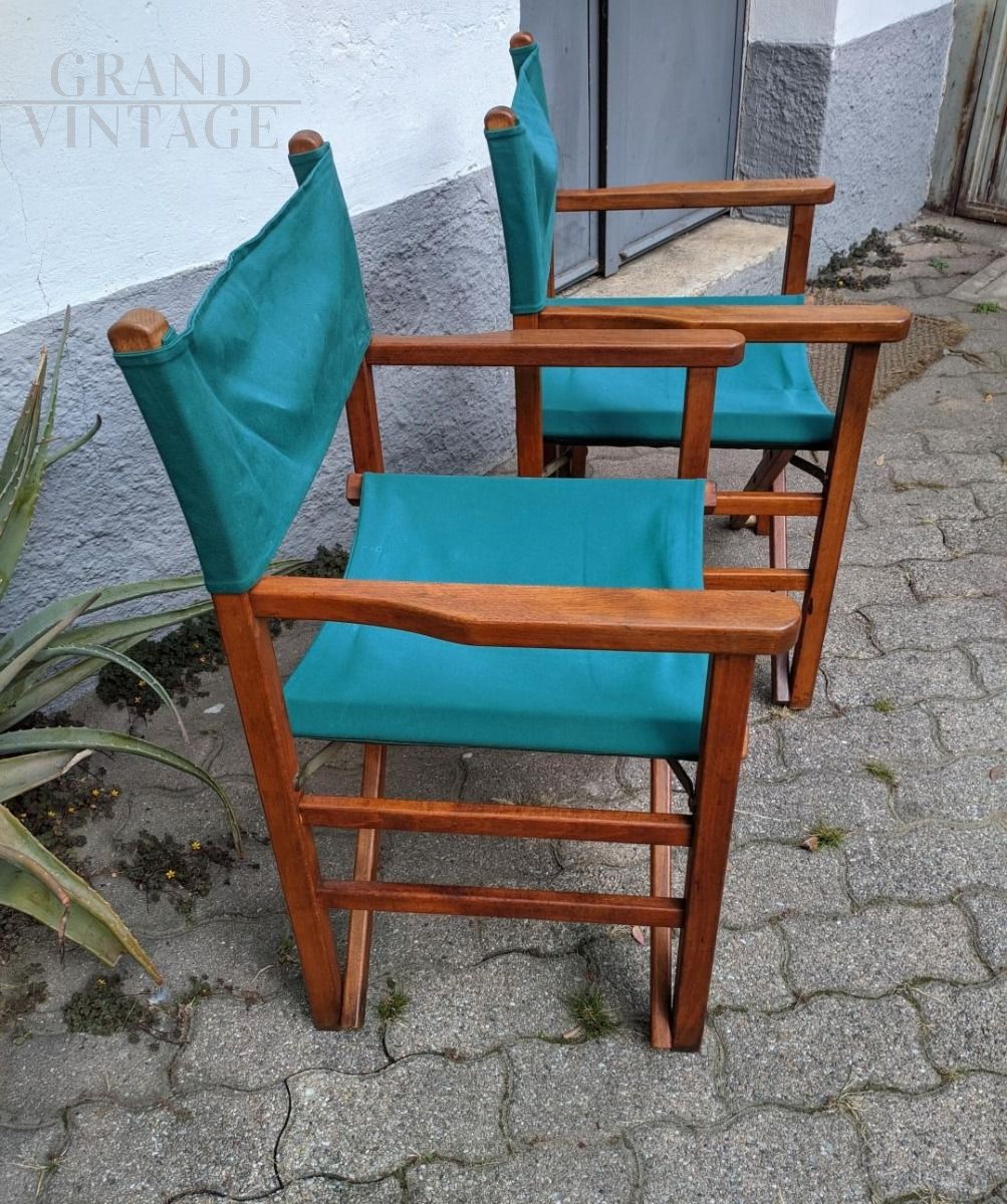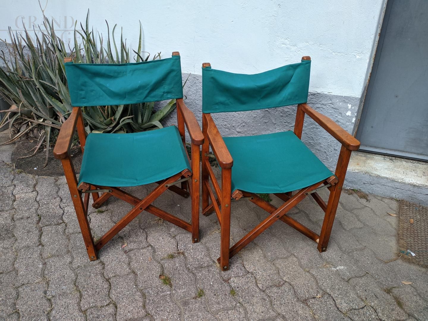 Coppia di sedie da regista anni '60 con struttura in legno di faggio.