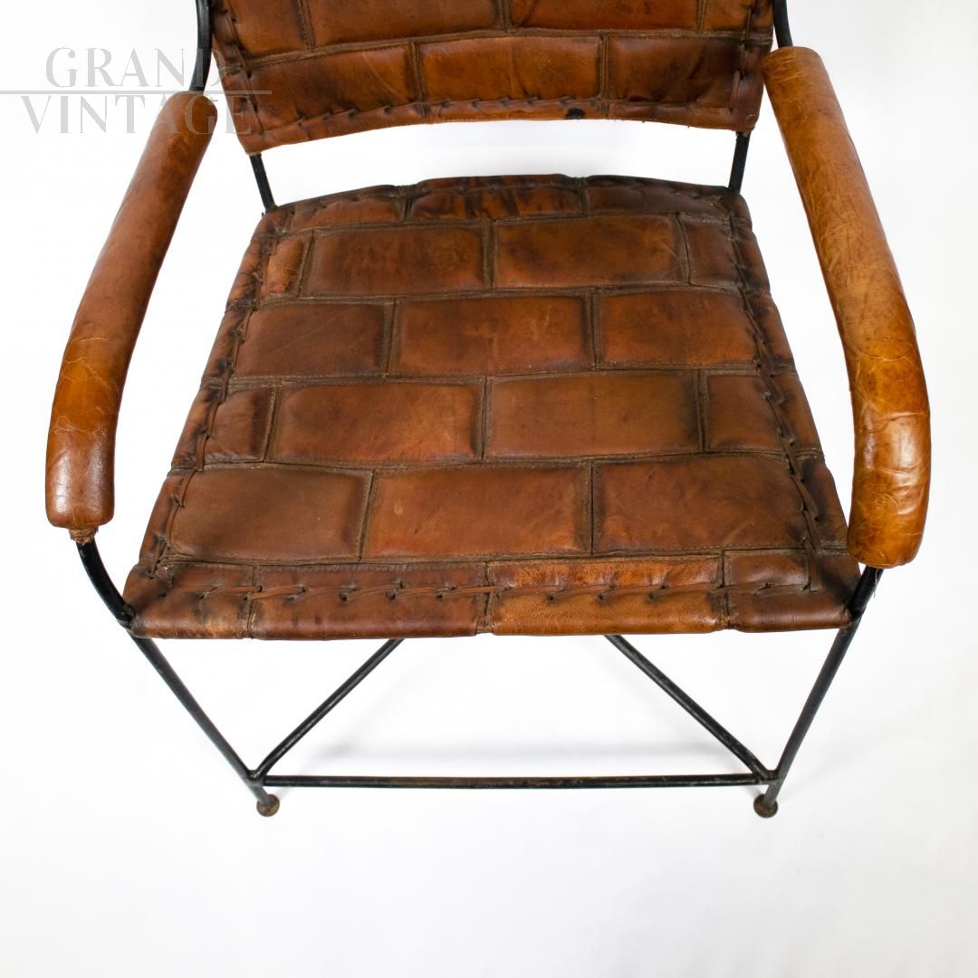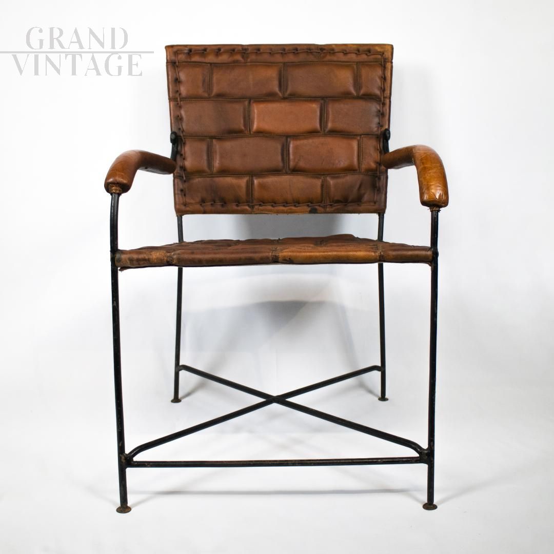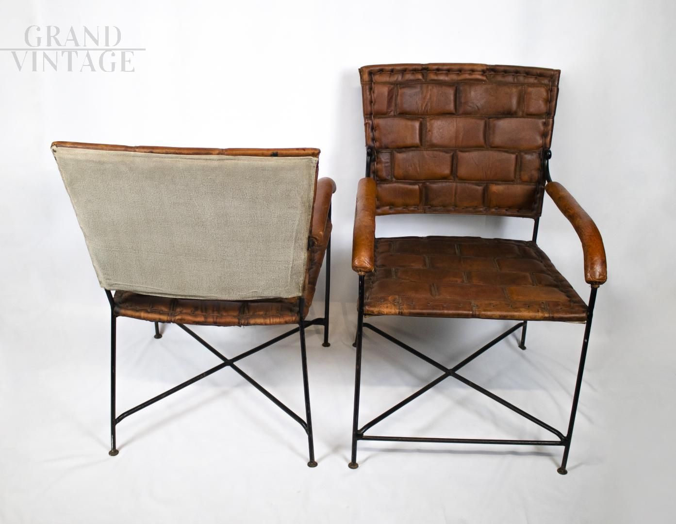 Coppia di sedie con struttura in ferro e seduta e schienale in cuoio lavorato a mano. Il mix perfetto di ferro e cuoio rende questa sedia unica e originale.