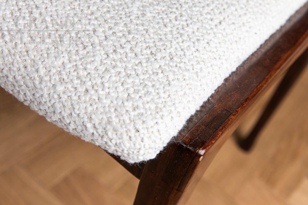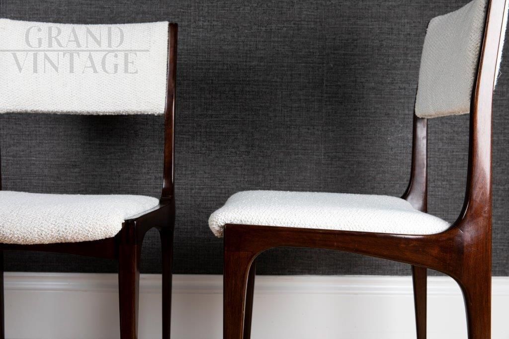 Coppia di sedie Carlo de Carli produzione Cassina, modello 693, restaurate e rifoderate in tessuto bouclé Dedar. Anno 1959.