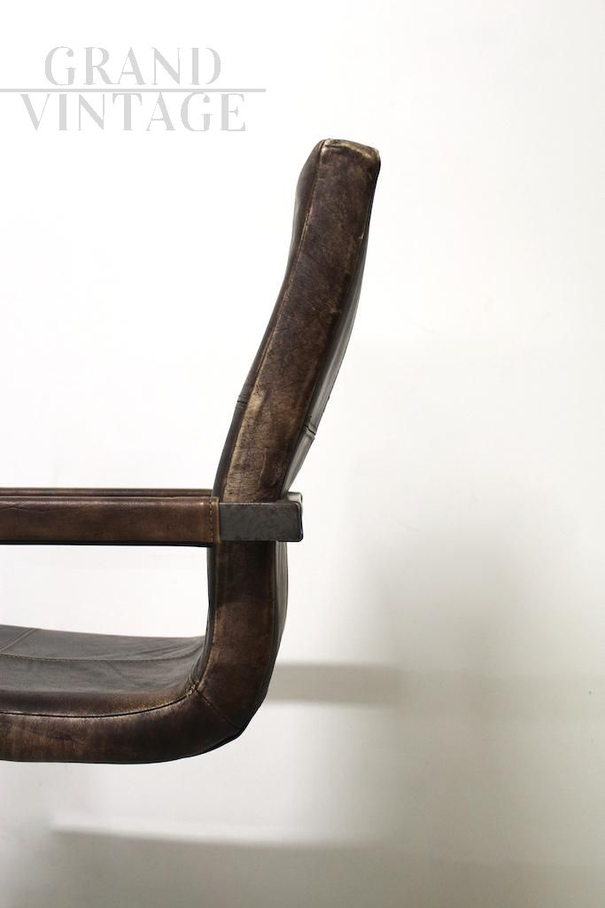 Coppia di sedie poltroncine cantilever stile vintage in pelle marrone