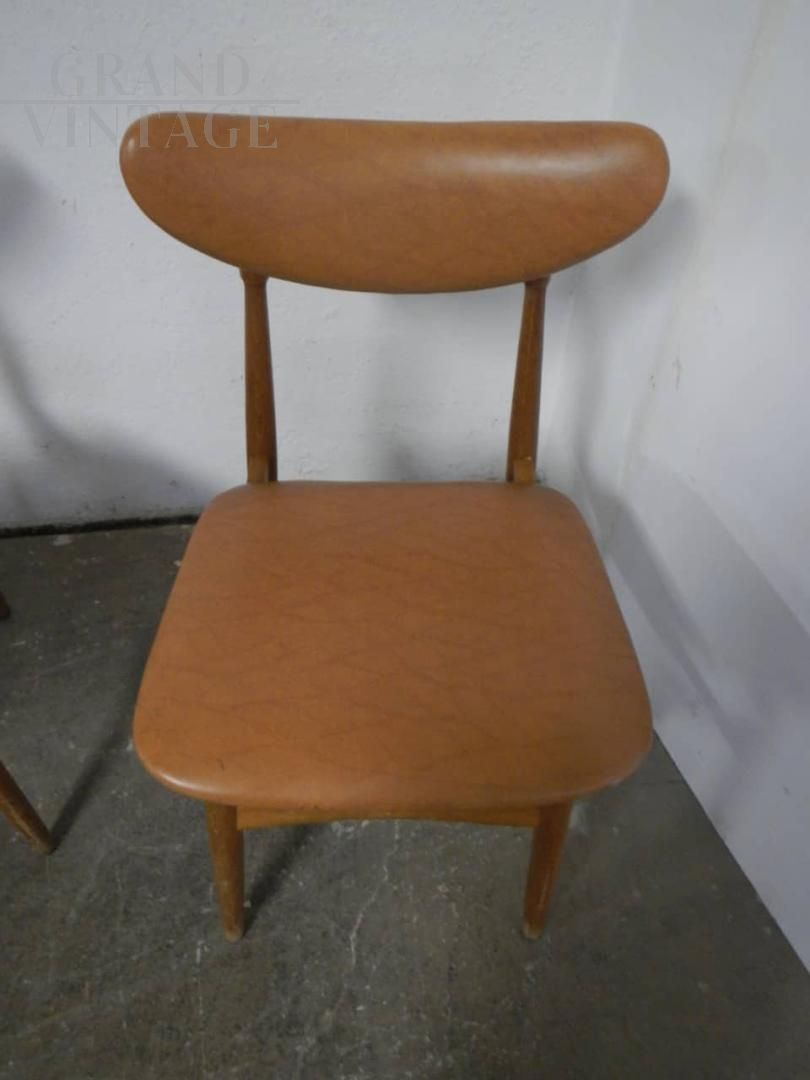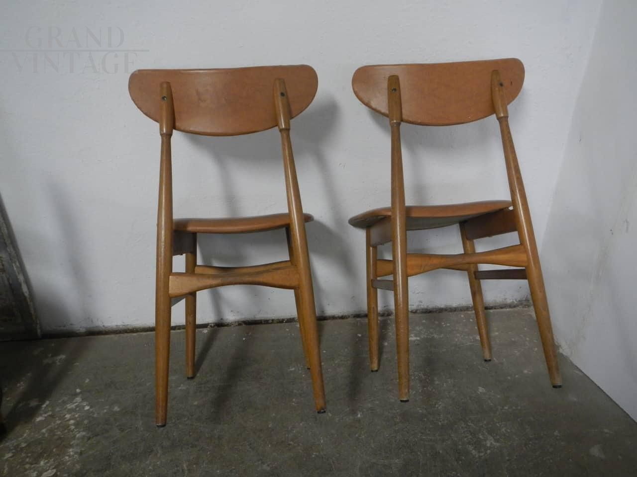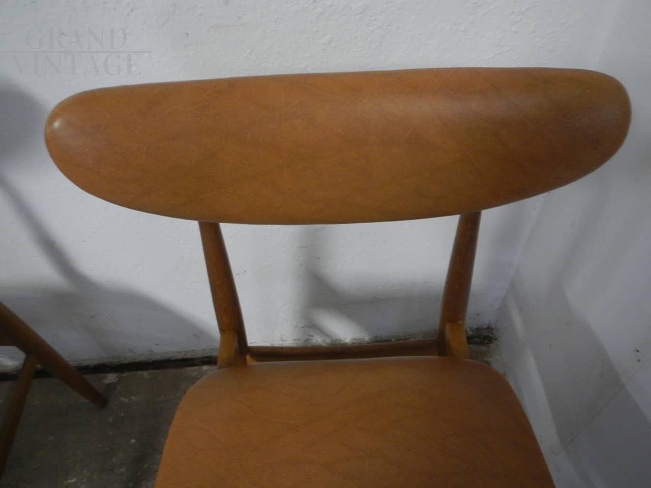 Coppia di sedie vintage in faggio e similpelle marrone, anni '50