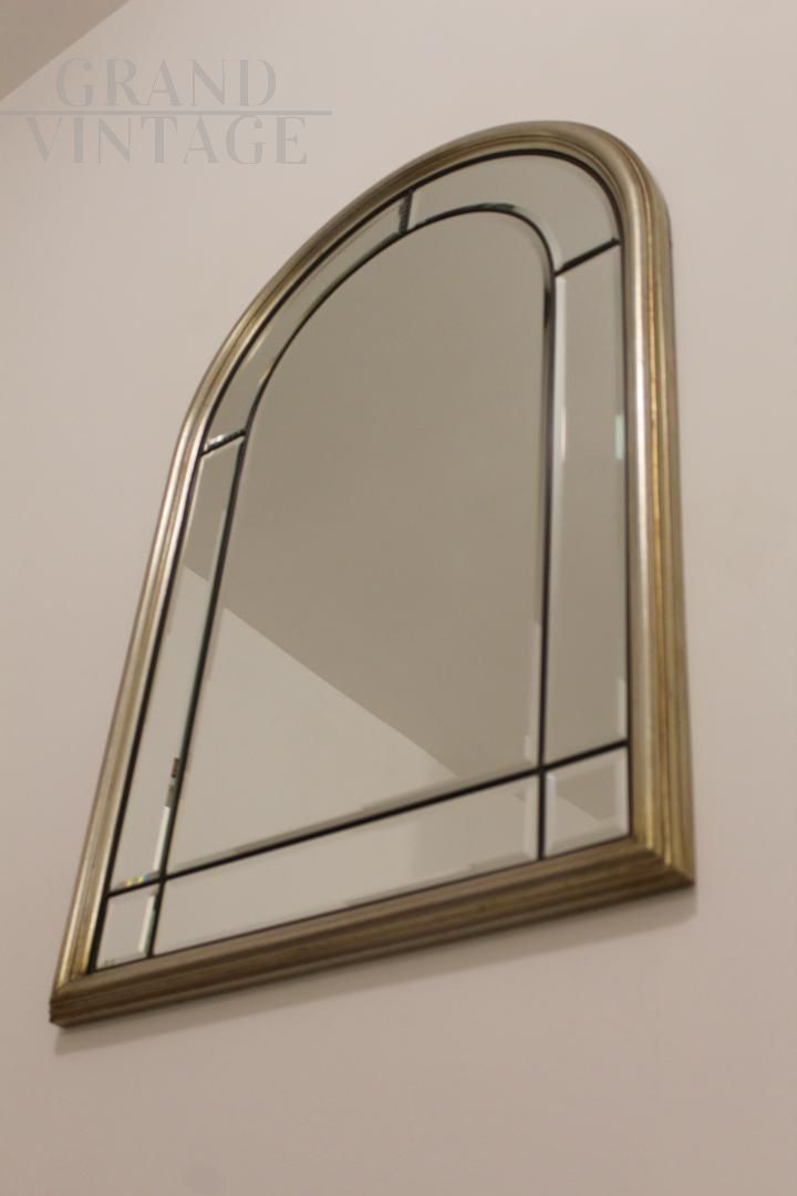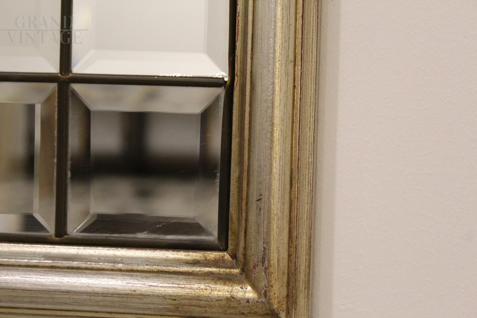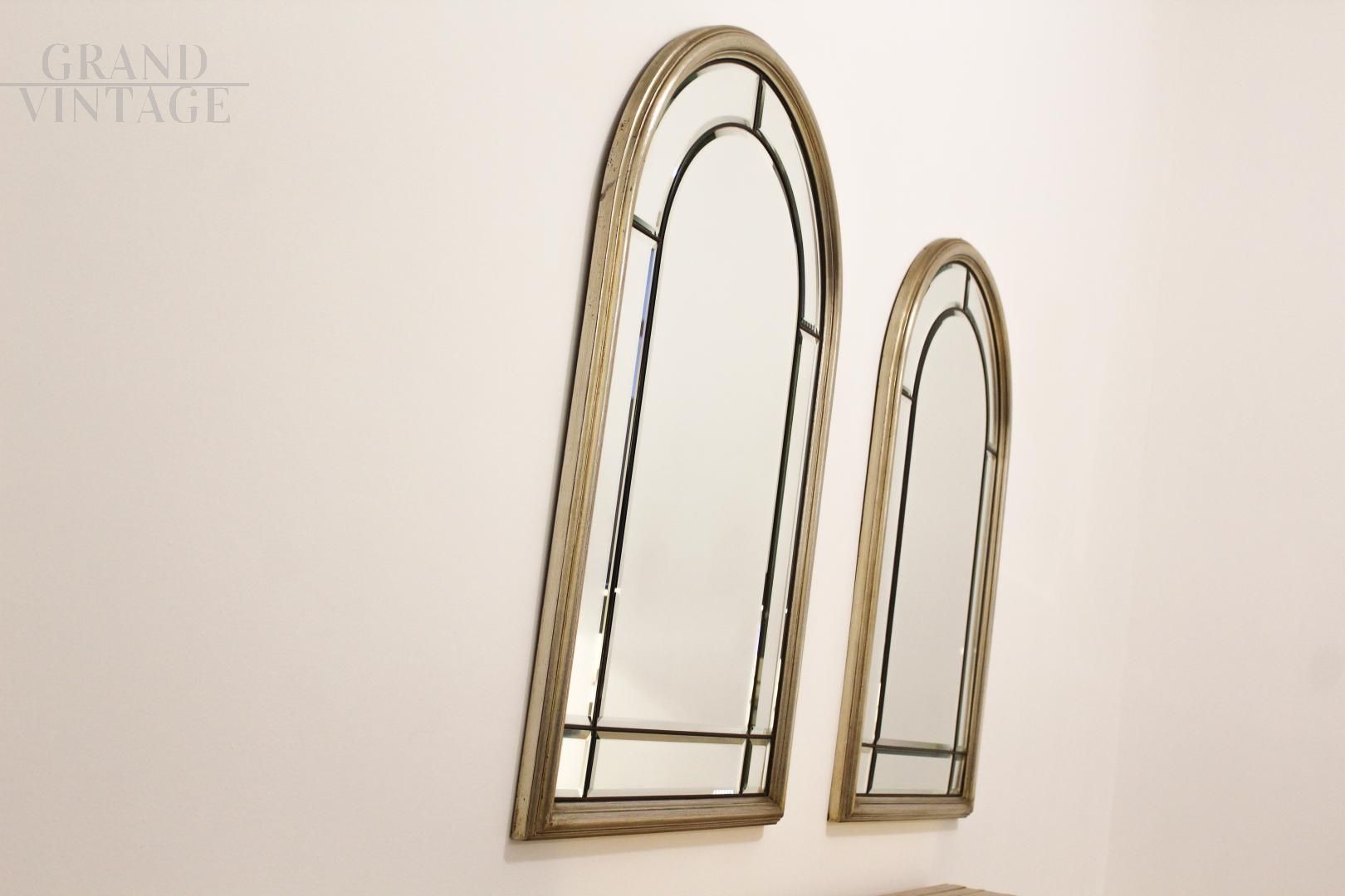 Coppia di specchi vintage bisellati in ottone e legno dorato