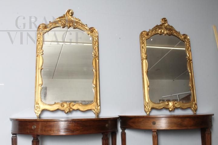 Coppia di specchiere antiche Luigi XVI in oro zecchino, 1750