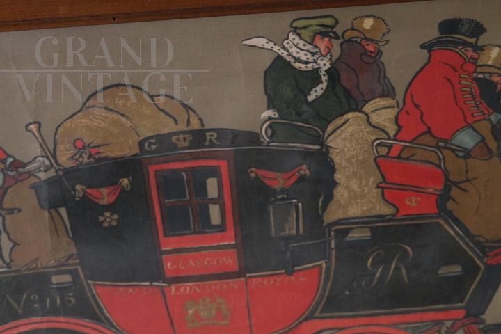 Coppia di stampe acquerellate inglesi con carrozze, XIX secolo, firmate