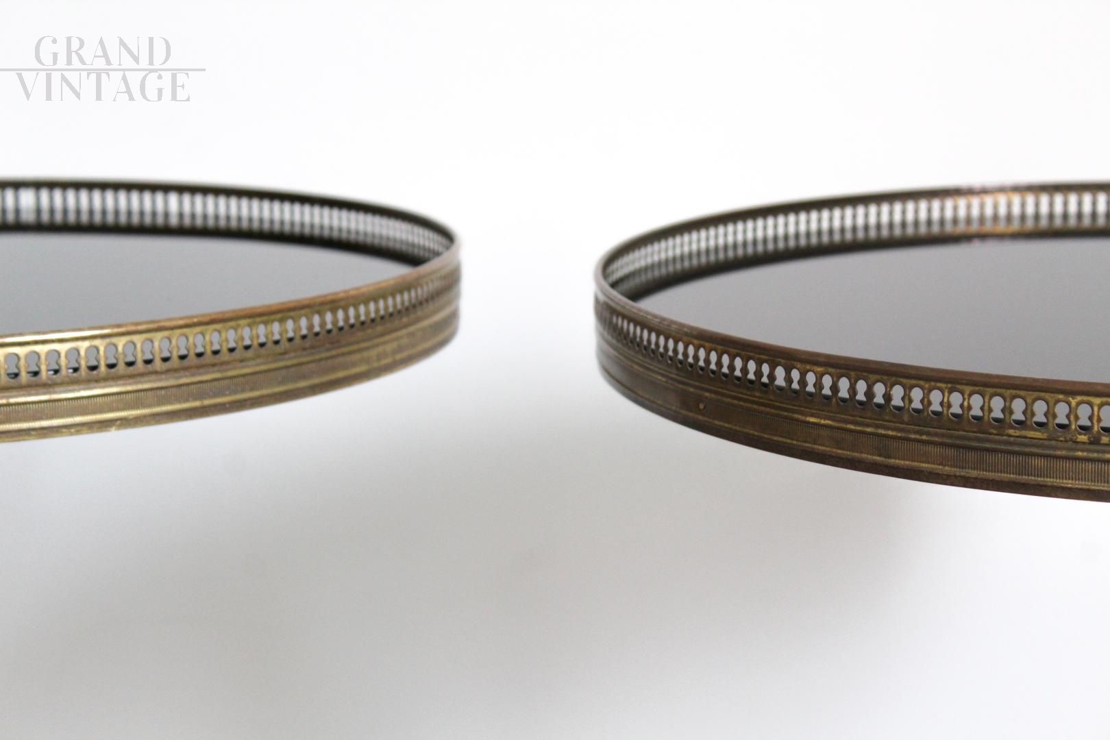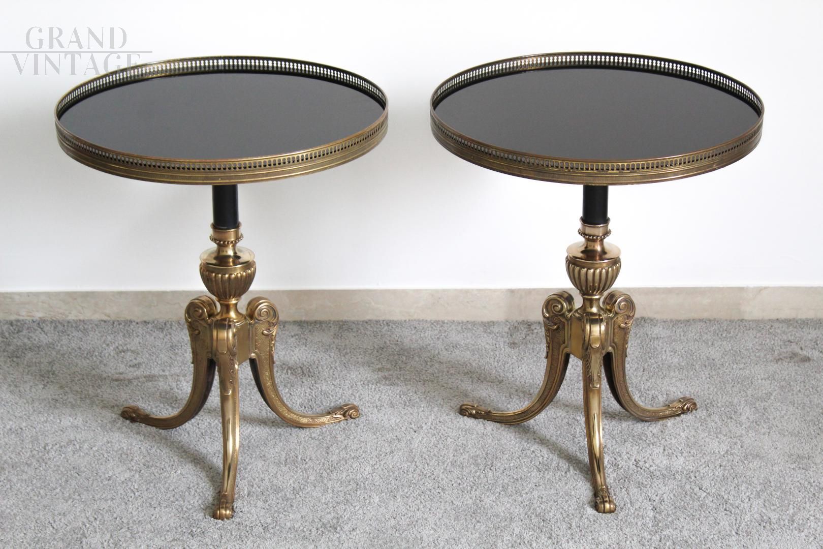 Coppia di tavolini Art Déco in bronzo e vetro nero