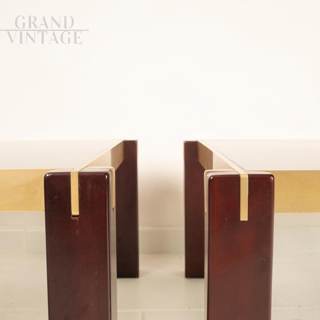 Coppia di tavolini Faraone di Renato Polidori per Skipper in legno, ottone e vetro fumé
