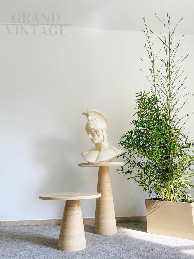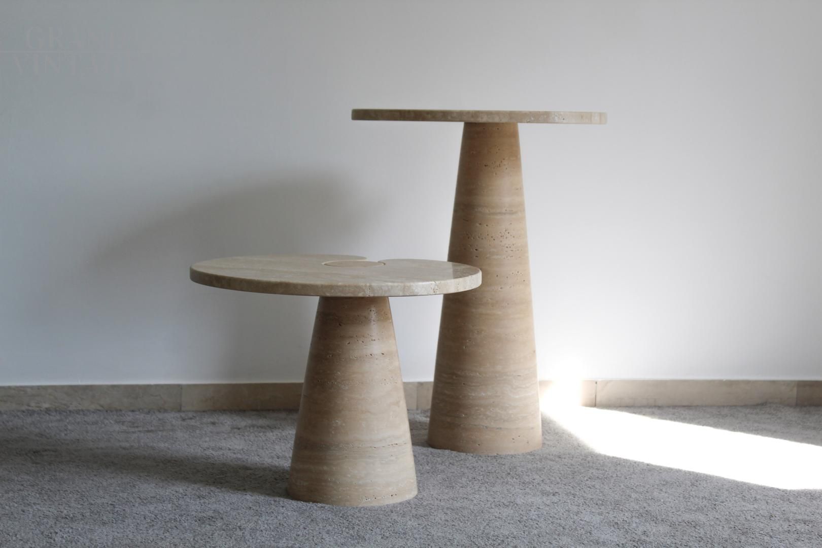 Coppia di tavolini serie Eros di Angelo Mangiarotti in marmo travertino