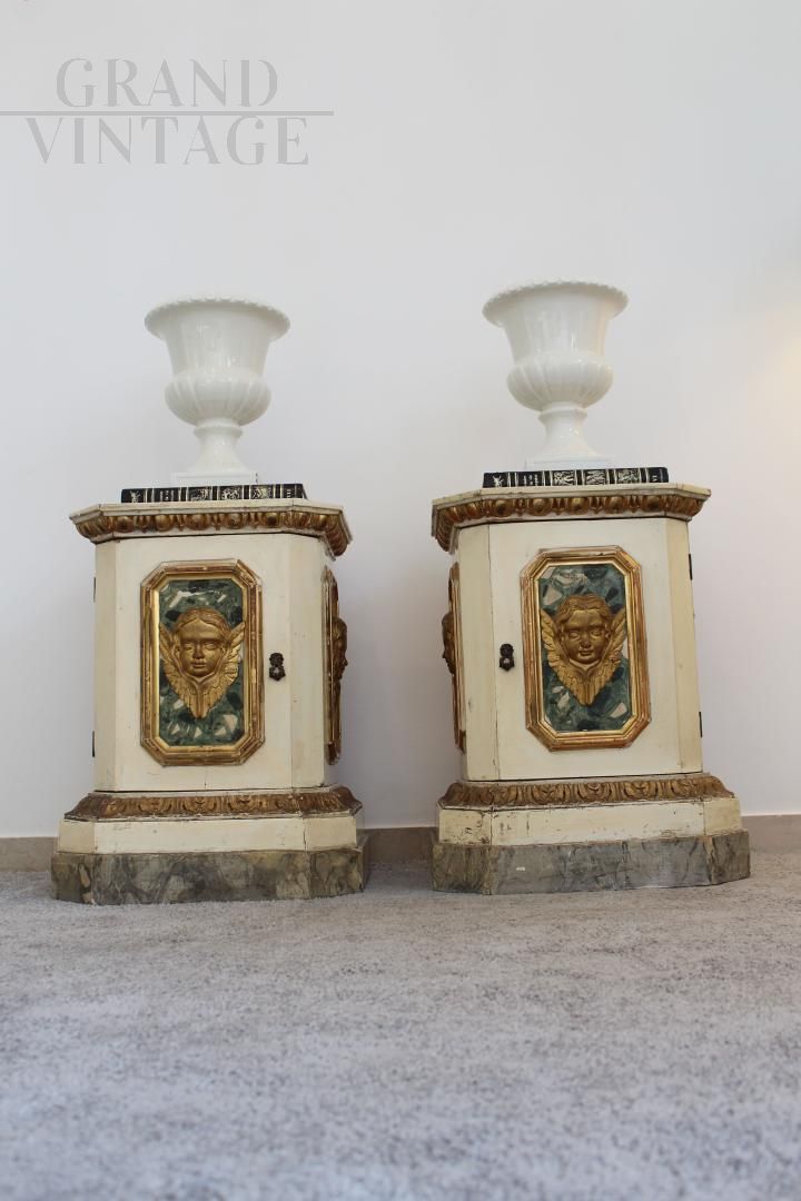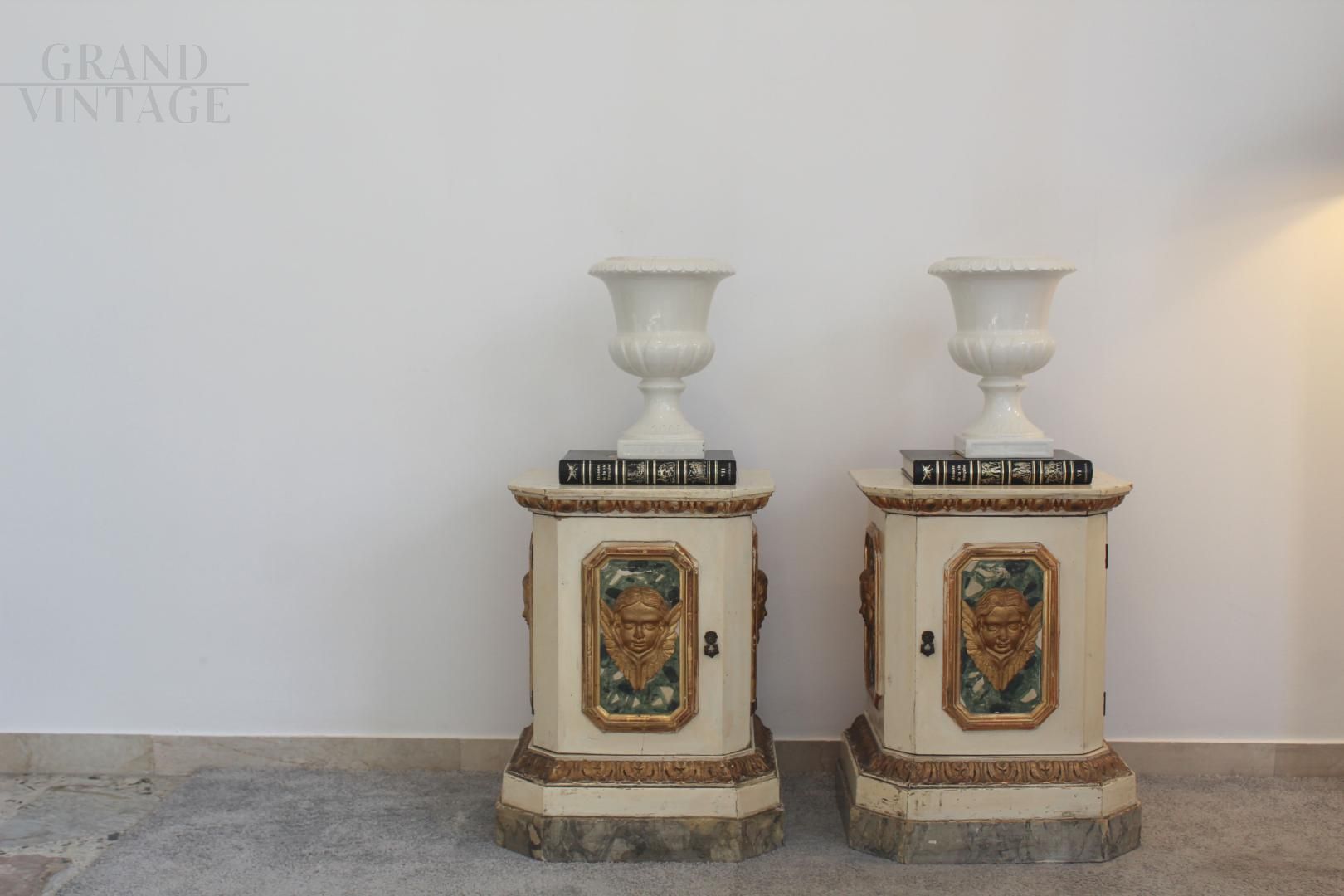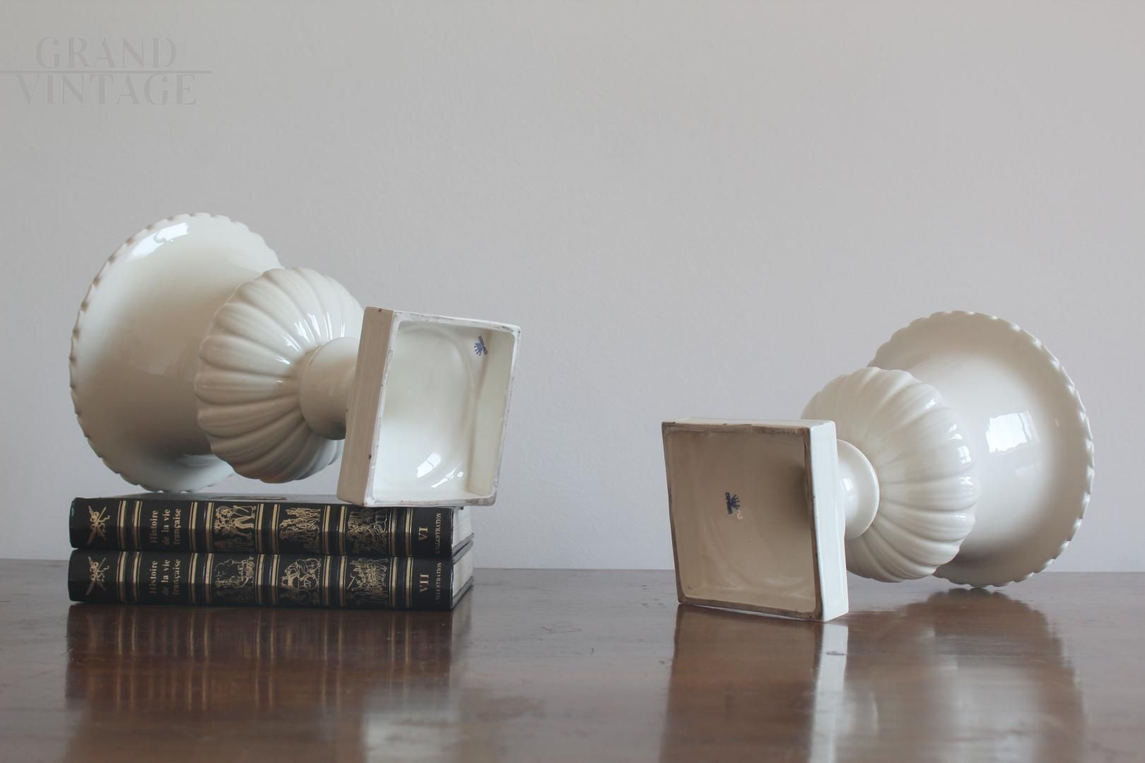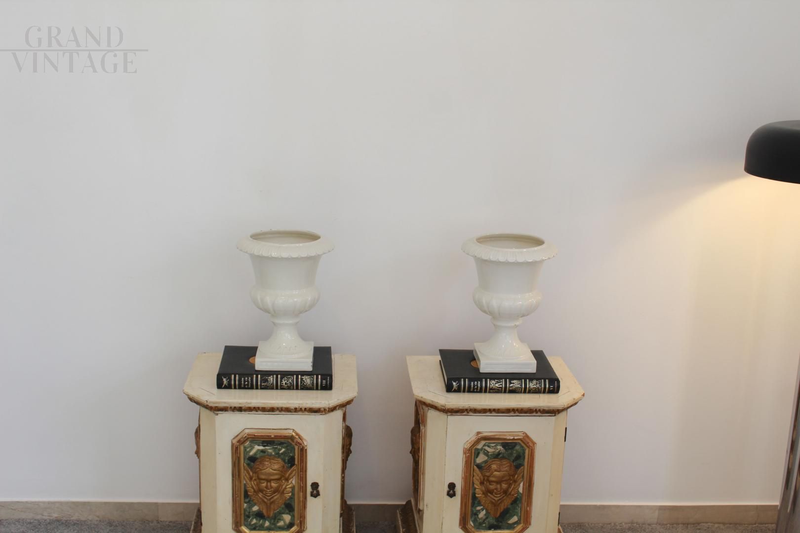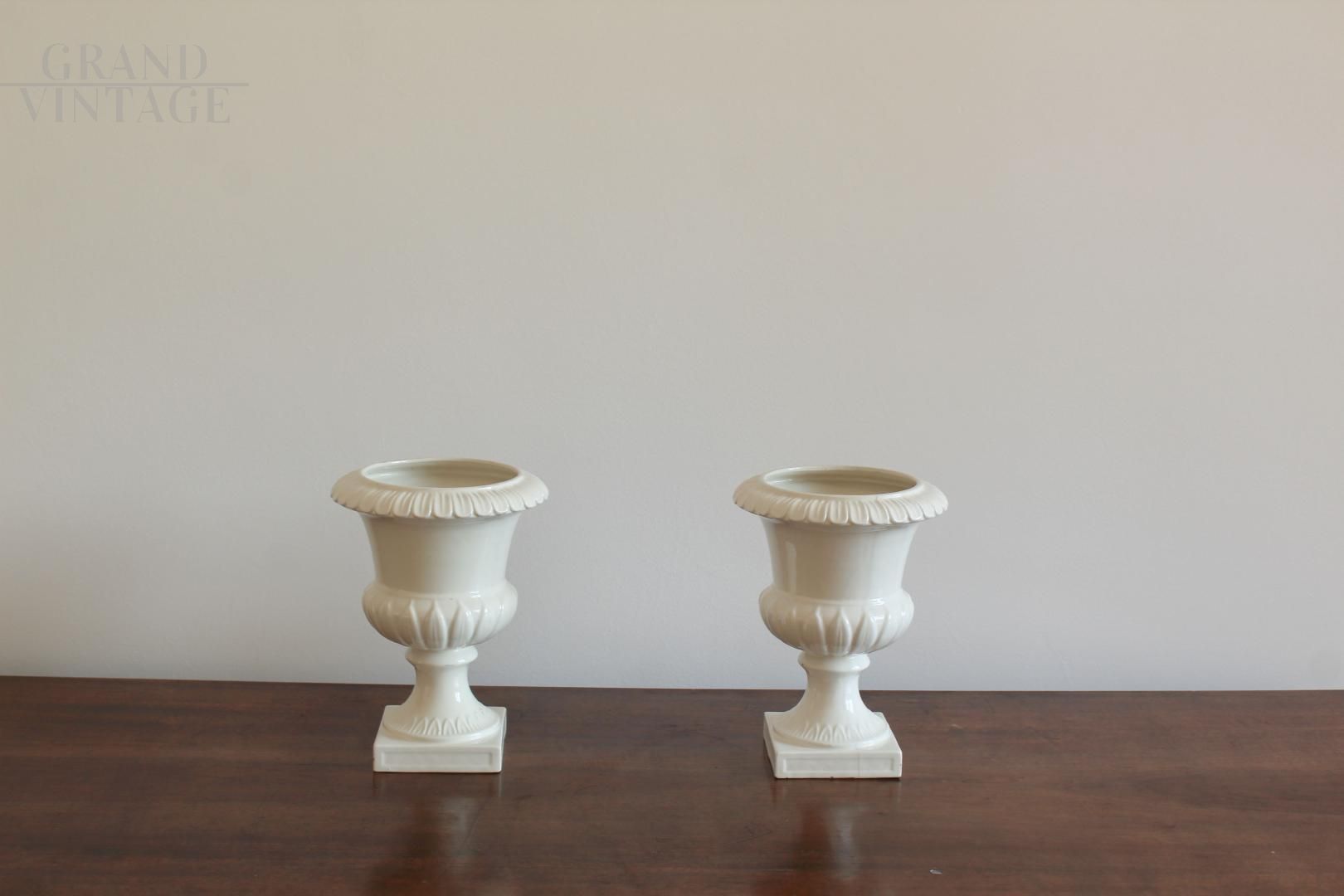 Coppia di Vasi Firmati Capuani Este in ceramica laccata bianca, Italia primi del '900, in ottimo stato di conservazione, presentano normali segni di usura dovuti al tempo.