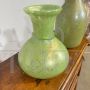 Coppia di splendidi vasi di manifattura dei Fratelli Toso in vetro artistico di Murano color verde chiaro a lustri metallici, dalle forme moderne e sinuose, mid-century italiano anni '60.