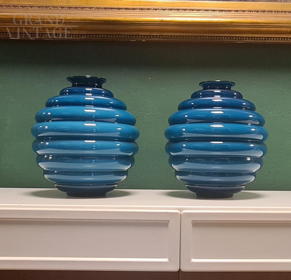 Coppia di vasi Déco di Napoleone Martinuzzi per Venini in vetro di Murano