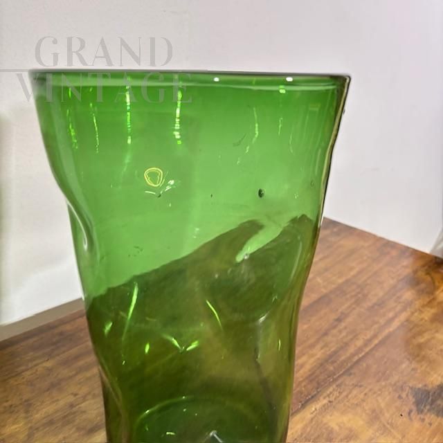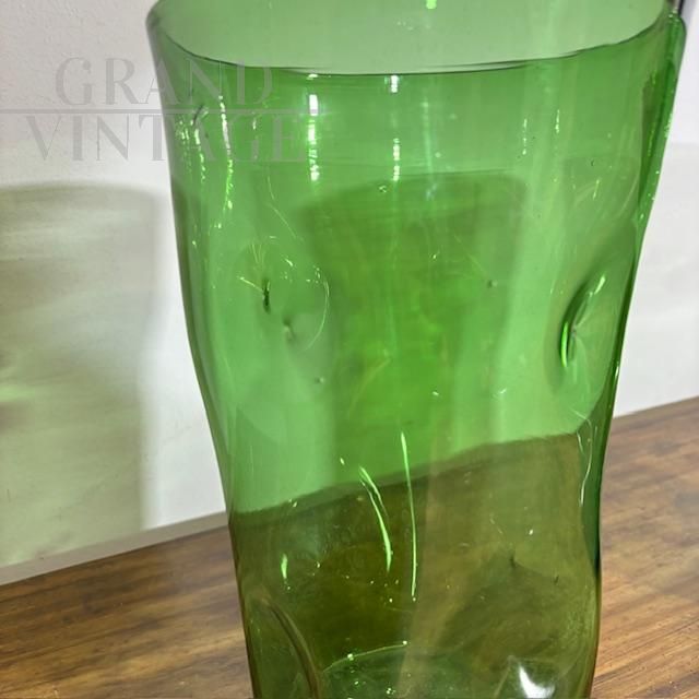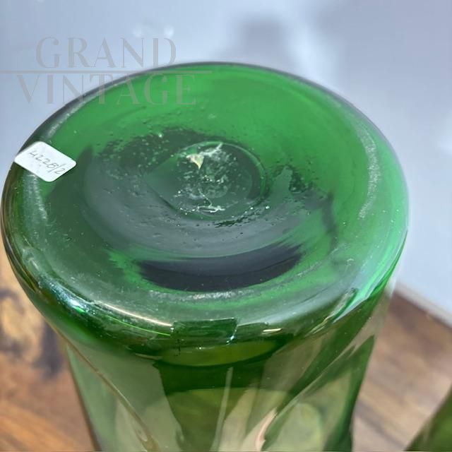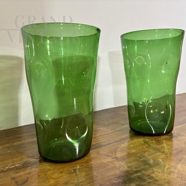 Coppia di vasi Empoli in vetro verde effetto schiacciato, 1940