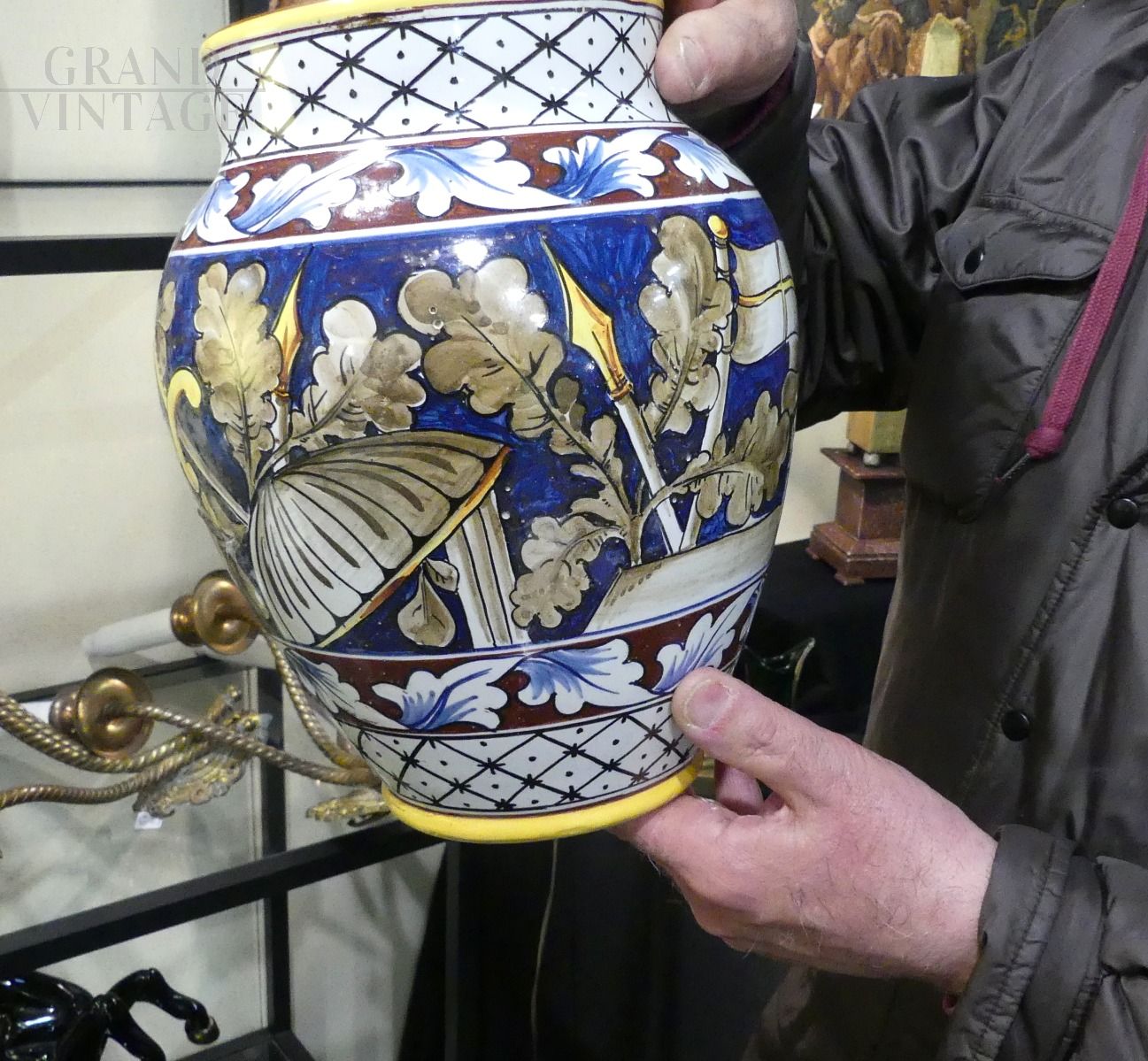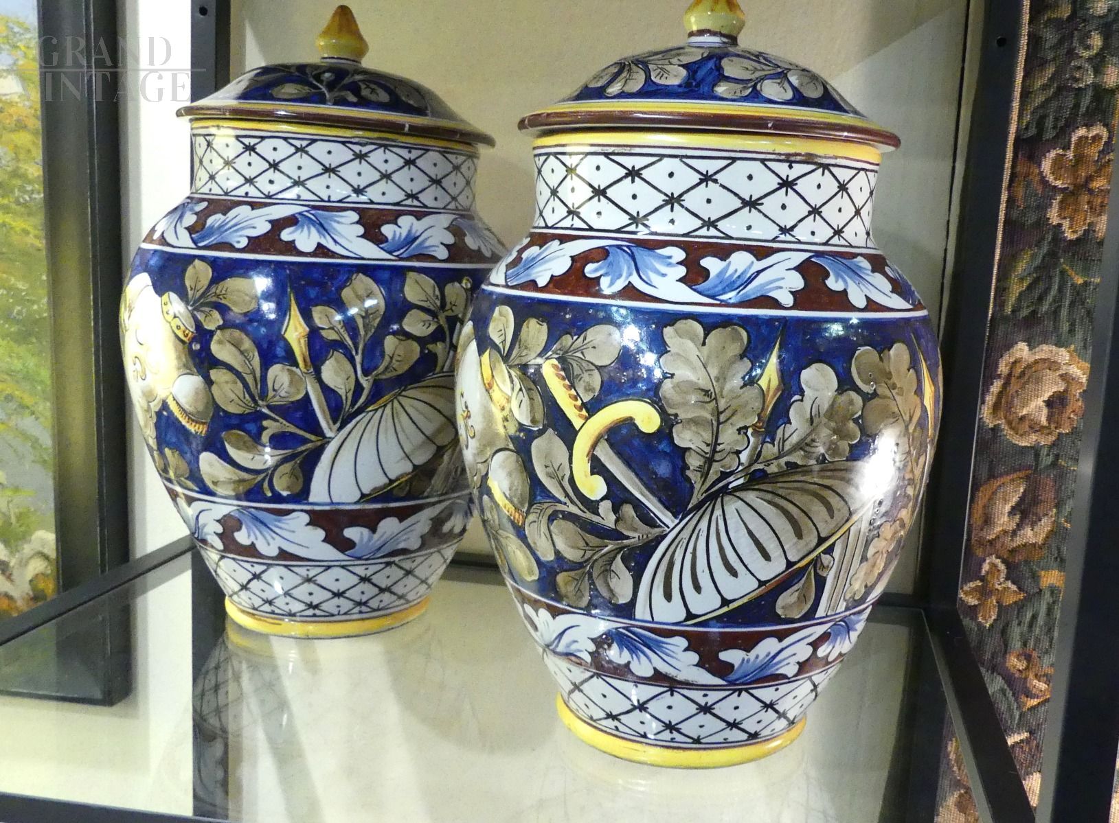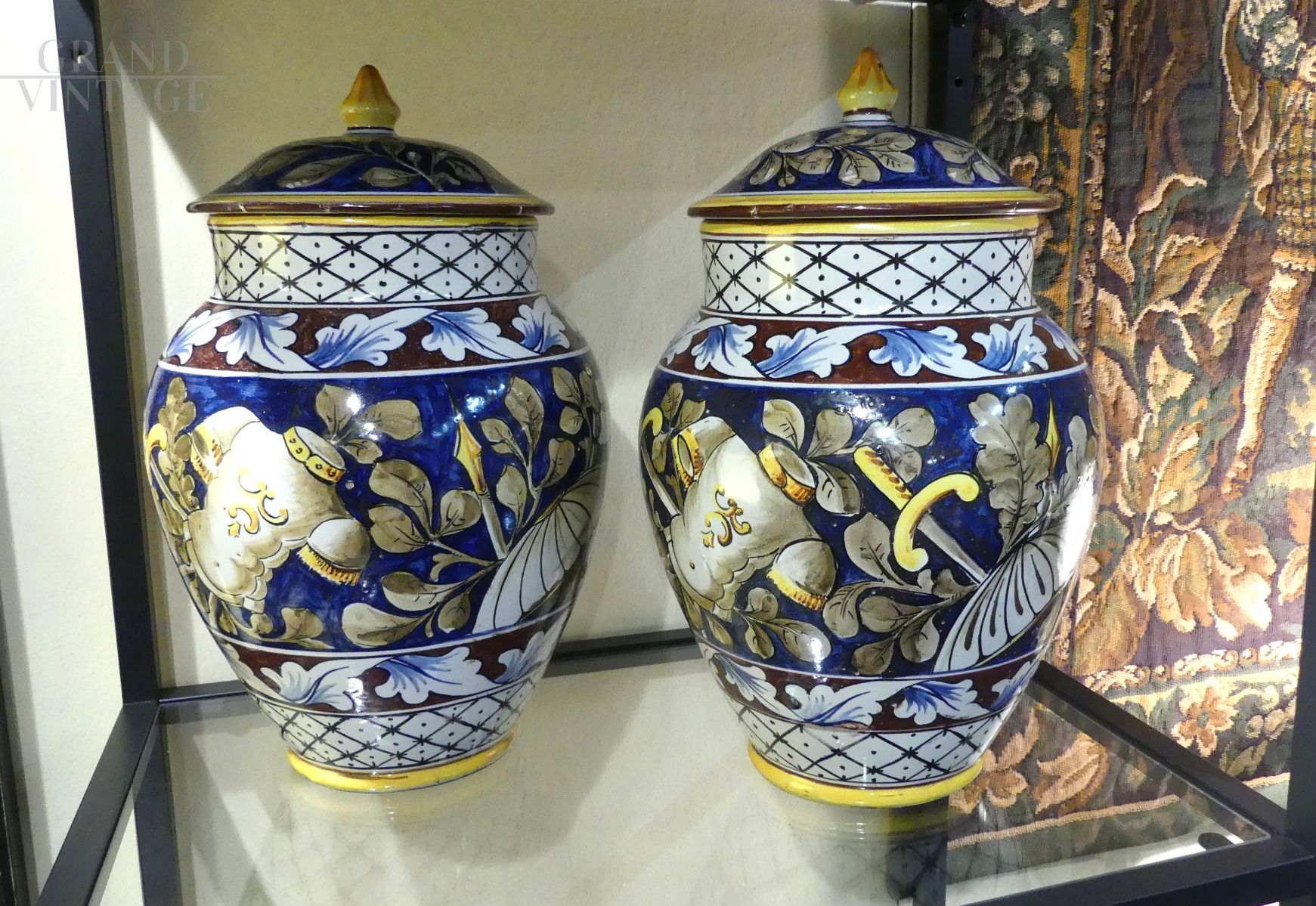 Coppia di vasi Crestoni di Girolamo anni '20 - '30 con la classica forma potiche, completi di coperchi, in ottime condizioni.