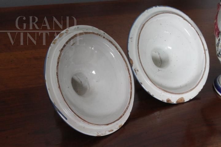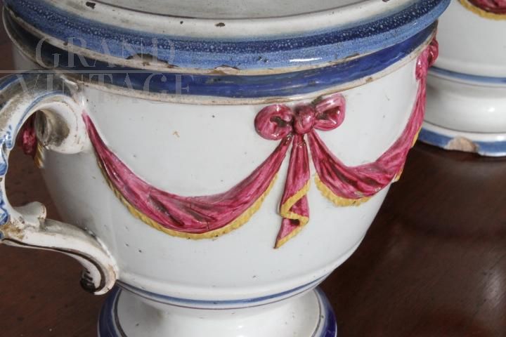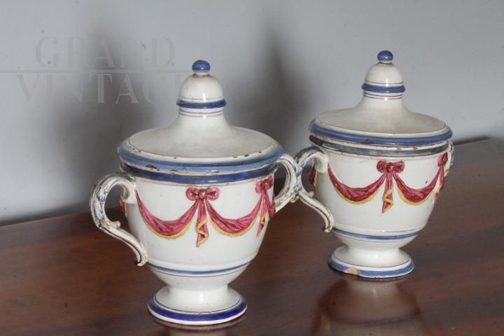 Coppia di vasi portaspezie del XVIII secolo in terracotta smaltata con festoni