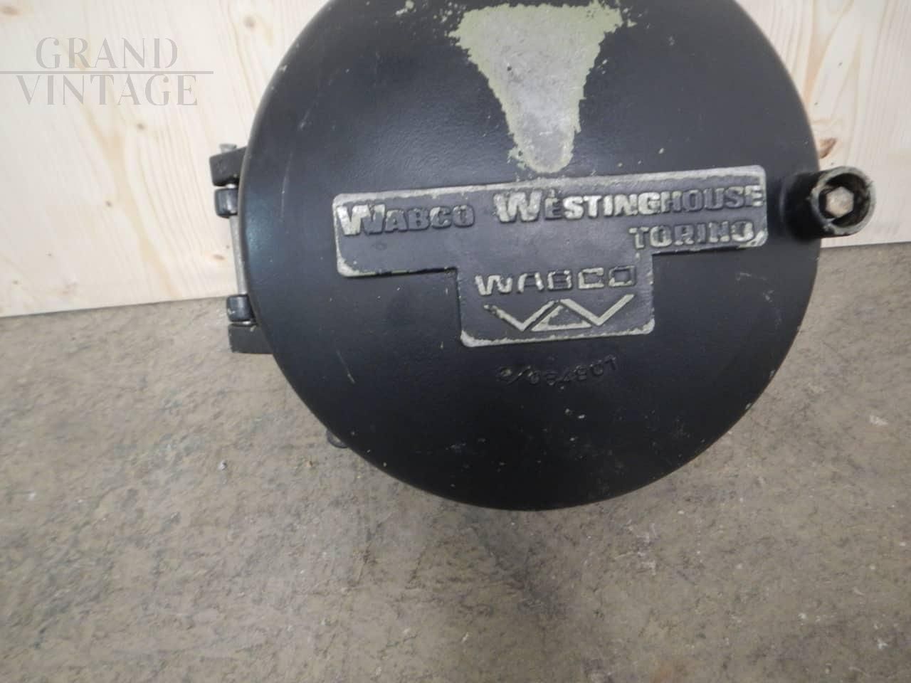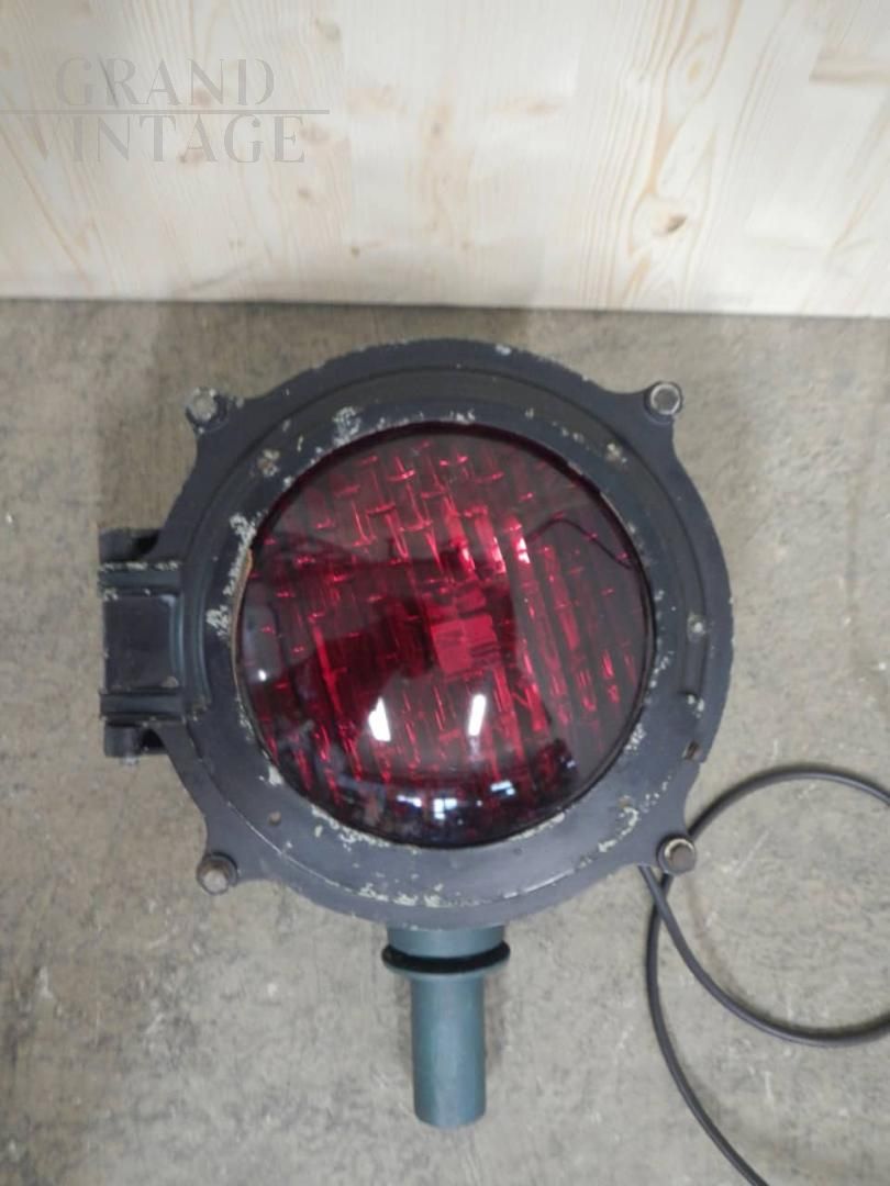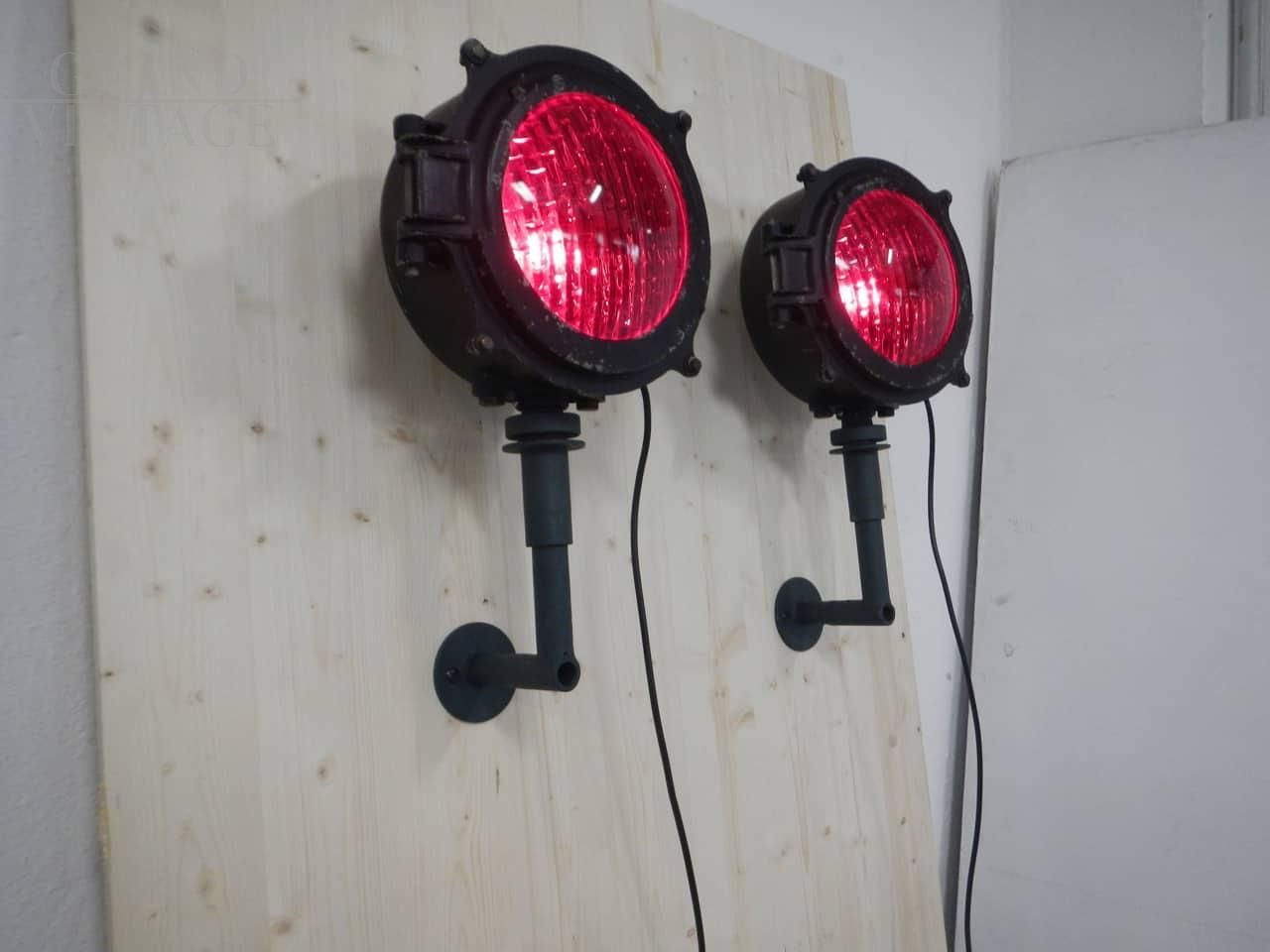 Coppia di fari da teatro prodotti da Wabco Westinghouse Torino Italia, con vetri originali rossi montati su sostegno in ferro non originale. Smontabili. Attacco lampadina E27.