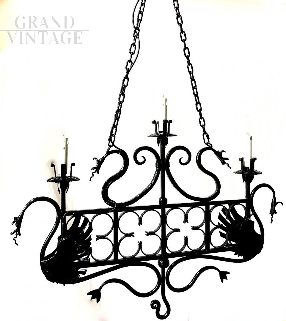 Lampadari in ferro battuto degli anni '40. in buone condizioni.