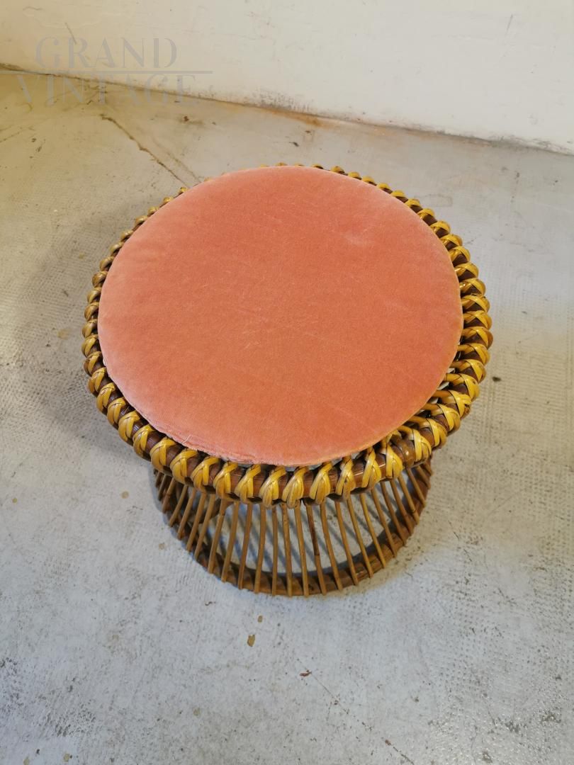 Coppia di poltrone Tito Agnoli in vimini con pouf, anni ’50