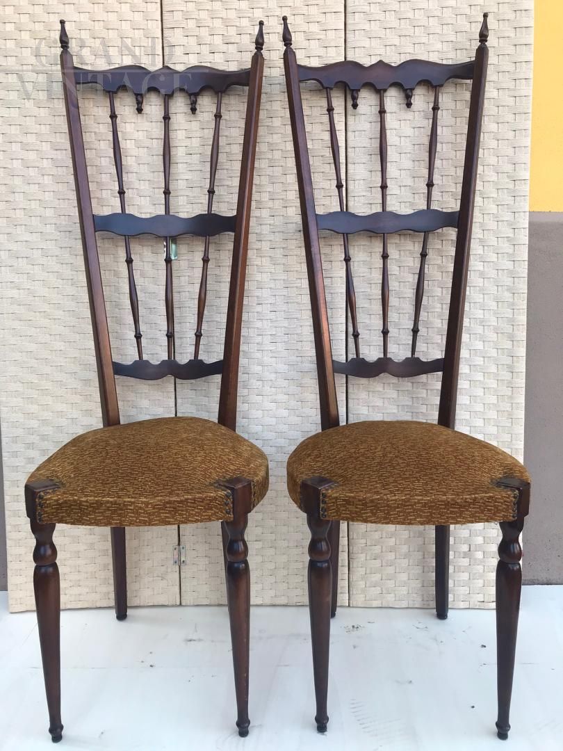 Coppia di sedie Chiavarine con schienale alto, anni '50