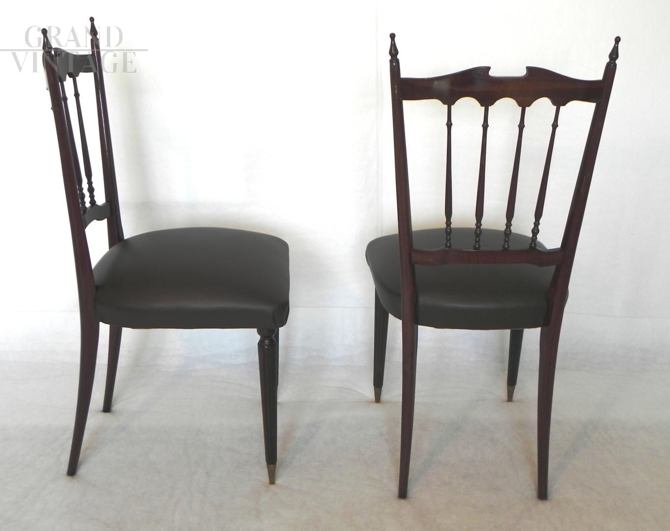 Coppia sedie Chiavarine anni '60 con seduta in skai grigio
