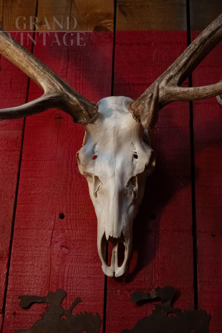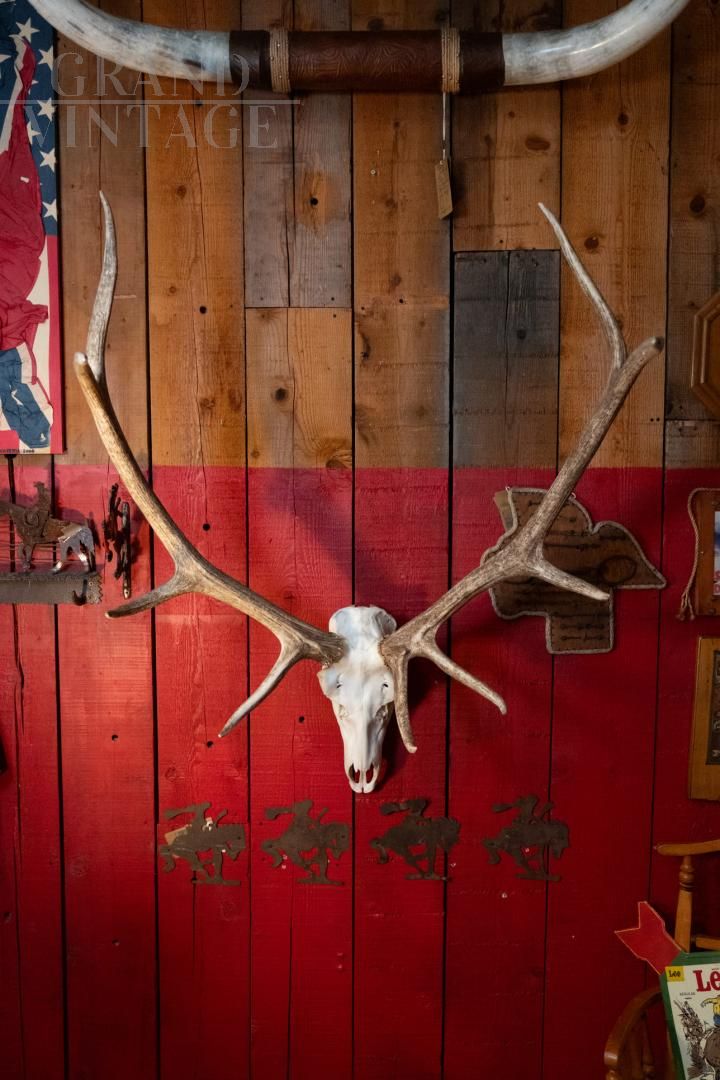 Trofeo in legno con corna di cervo, un pezzo di arredamento rustico che porta l’eleganza della natura all’interno della vostra casa.