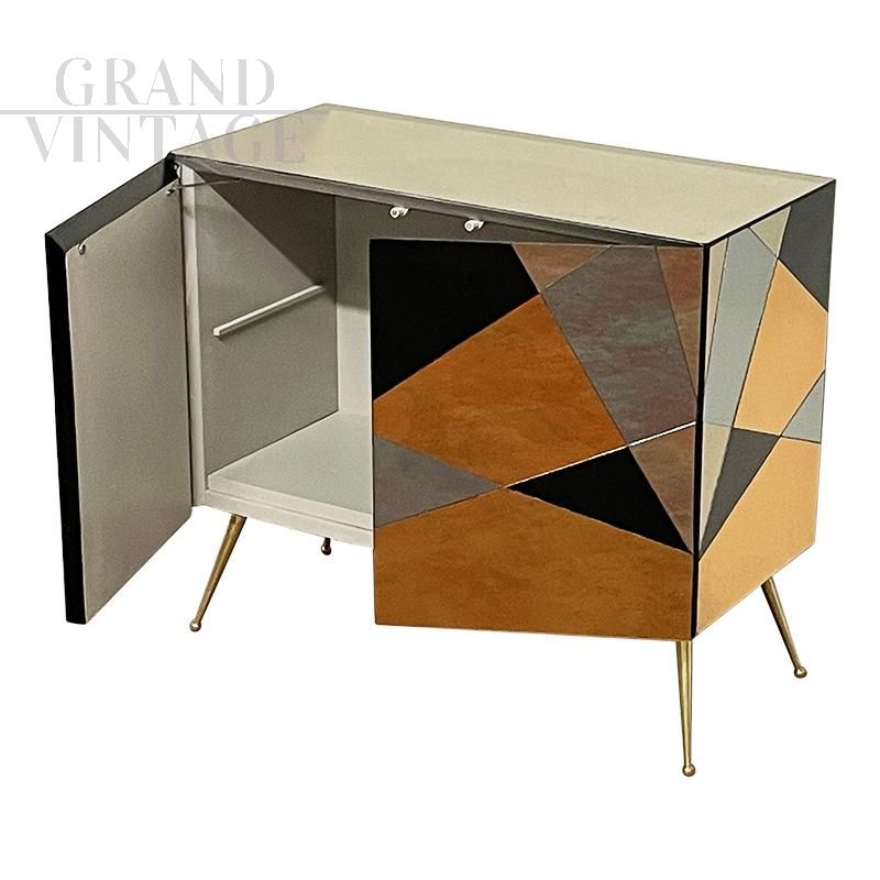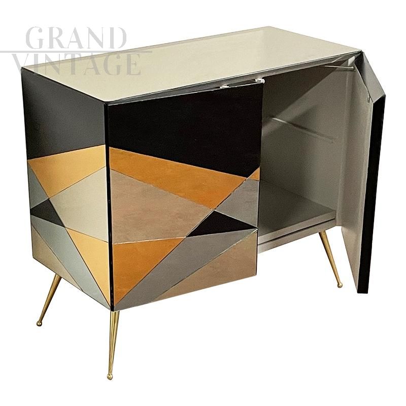 Credenza a 2 ante con geometrie di vetri specchiati