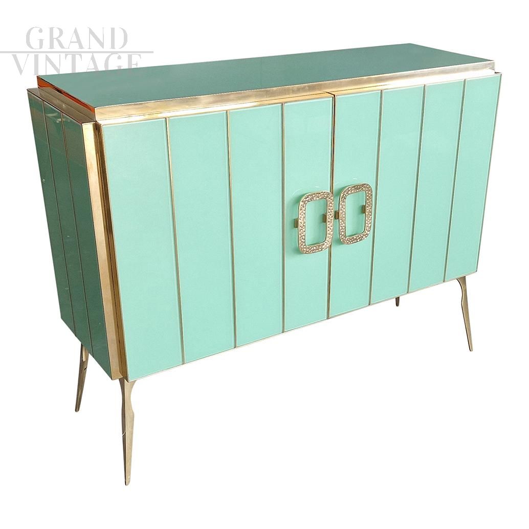 Credenza a due ante in vetro di Murano verde acqua e ottone