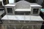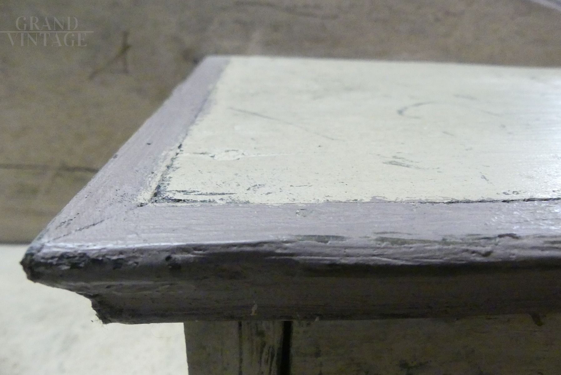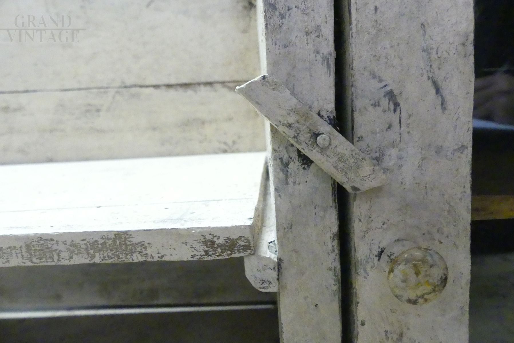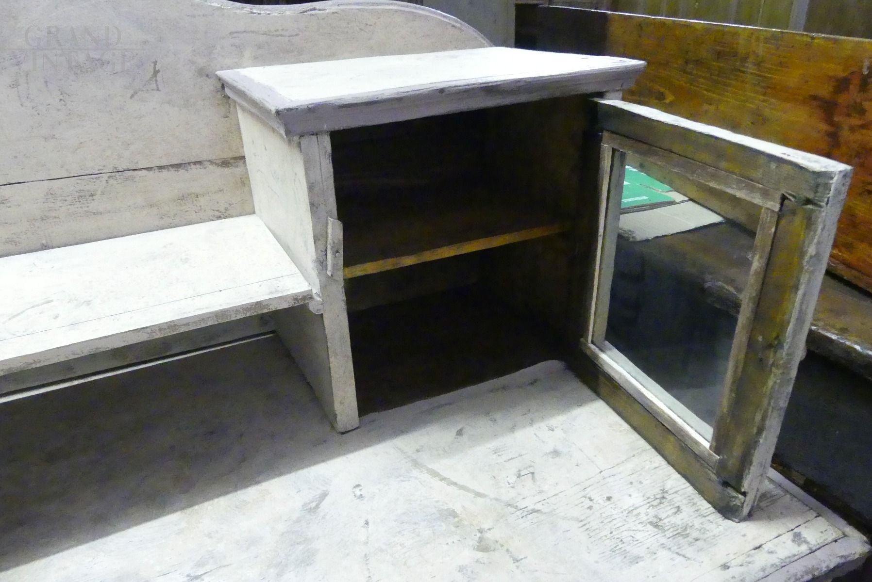 Credenza antica da cucina con alzata del periodo 1870 - 1880, di provenienza Lombarda, costruita in legno di abete in pittura bianca, di gusto shabby chic provenzale, perfetta da inserire in un ambiente in stile country. Il mobile presenta i naturali segni del tempo, come da foto.