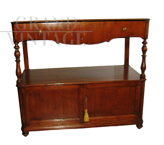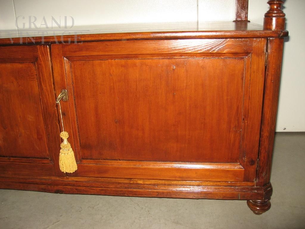 Credenza antica a due corpi in abete massello. Epoca fine 1800 - inizi 1900