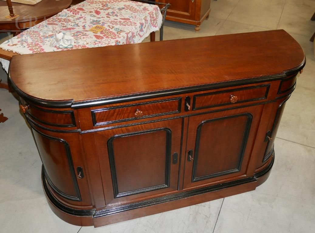 Credenza antica in noce con angoli arrotondati, seconda metà dell'800