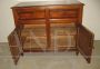 Credenza antica dei primi del '900 in noce massello con parti lastronate, piano massello, due cassetti lastronati con filetto, due ante nella parte inferiore con ripiano interno. Fianchi a due pannelli in noce massello, fascia sotto lastronata, piedi troncopiramidali. La credenza è in buono stato, con vari piccoli segni del tempo visibili nelle foto. Restaurata tempo addietro.