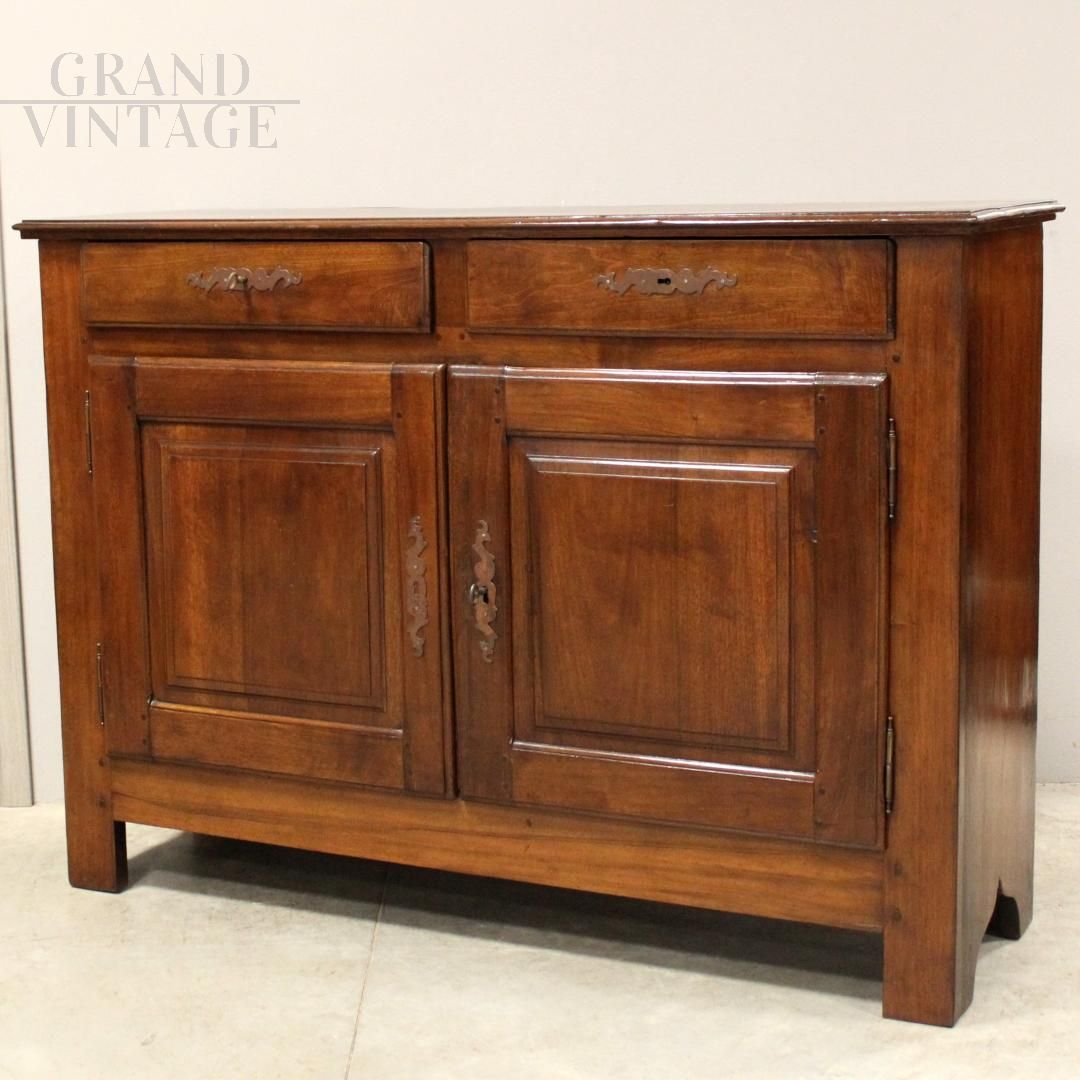 Credenza antica in noce massello a due ante della fine del '700, restaurata.