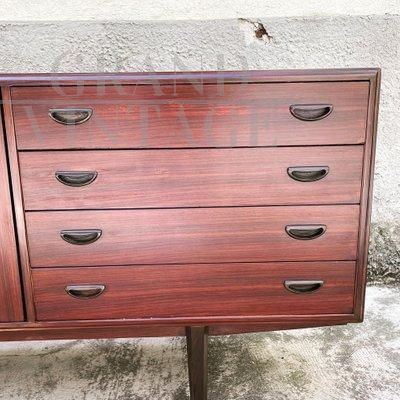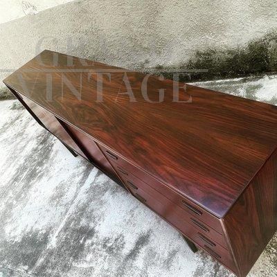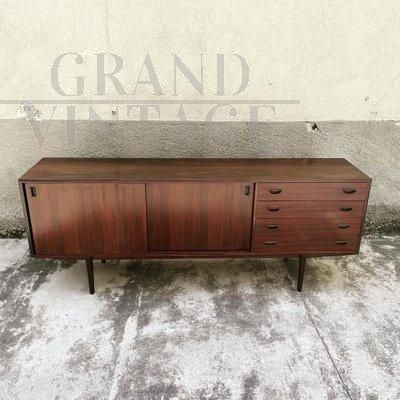 Credenza madia scandinava di Peter Hvidt & Orla Mølgaard-Nielsen, design mid-century danese, in palissandro con 2 ante scorrevoli e 4 cassetti, completamente restaurata.