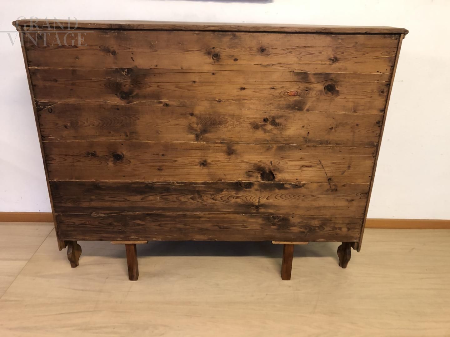 Credenza scantonata Veneta antica in legno di abete della fine dell'800, completamente restaurata con finitura a cera.