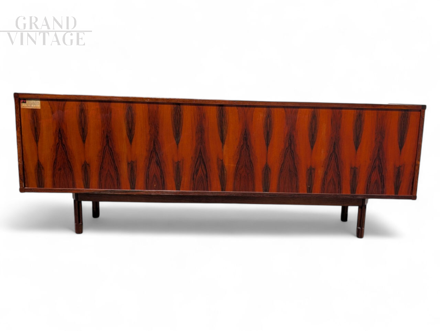 Splendida credenza in legno vintage disegnata da George Coslin per 3V arredamenti Padova negli anni '60. Questo pezzo è stato restaurato completamente ed è tornato vivo grazie al suo stile inconfondibile. Dimensioni 77 x 217 x 45 cm (Altezza, larghezza, profondità)
