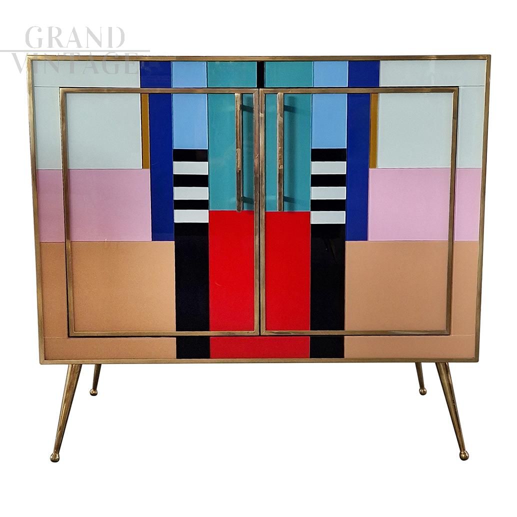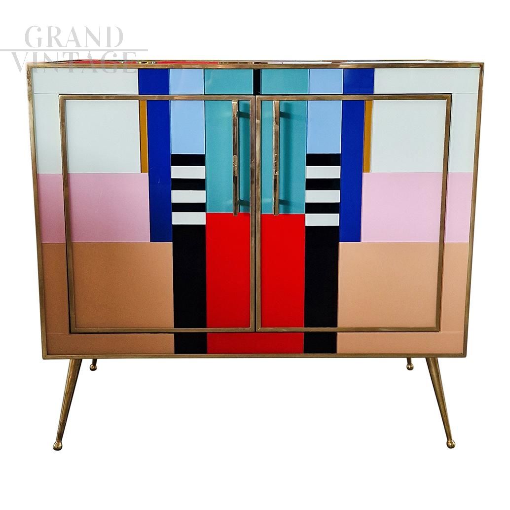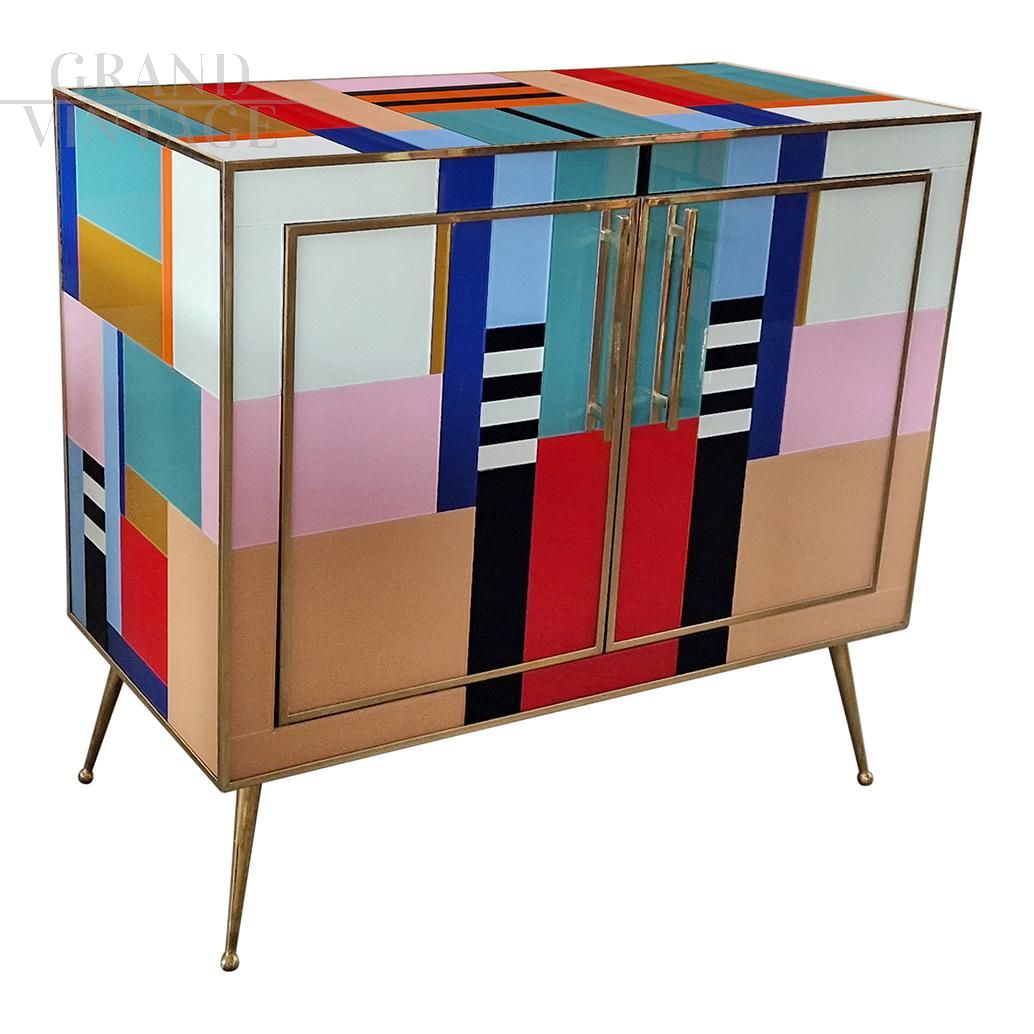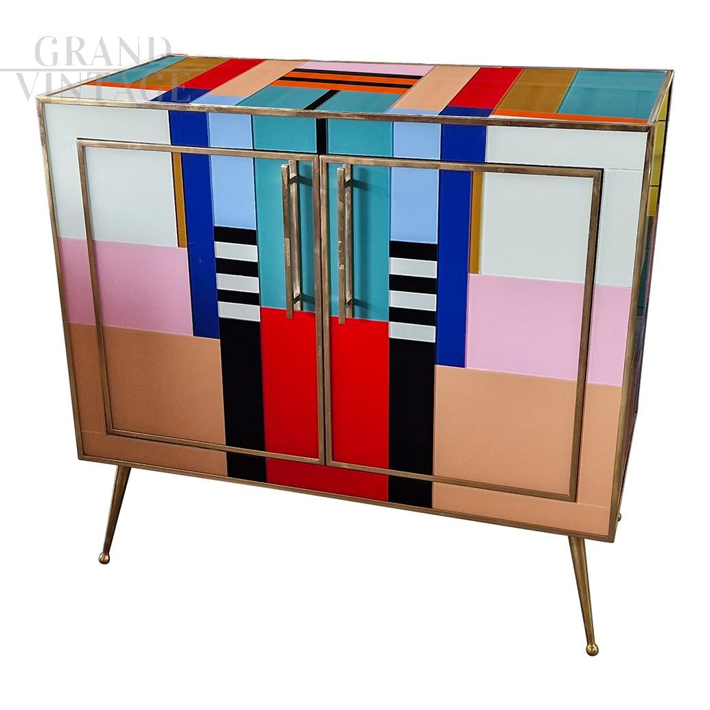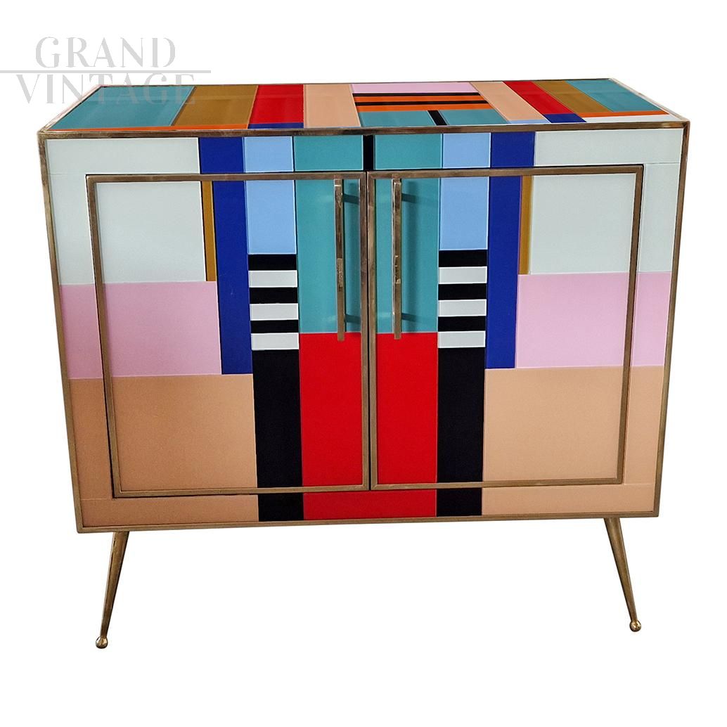 Credenza stile vintage in vetro di Murano multicolore