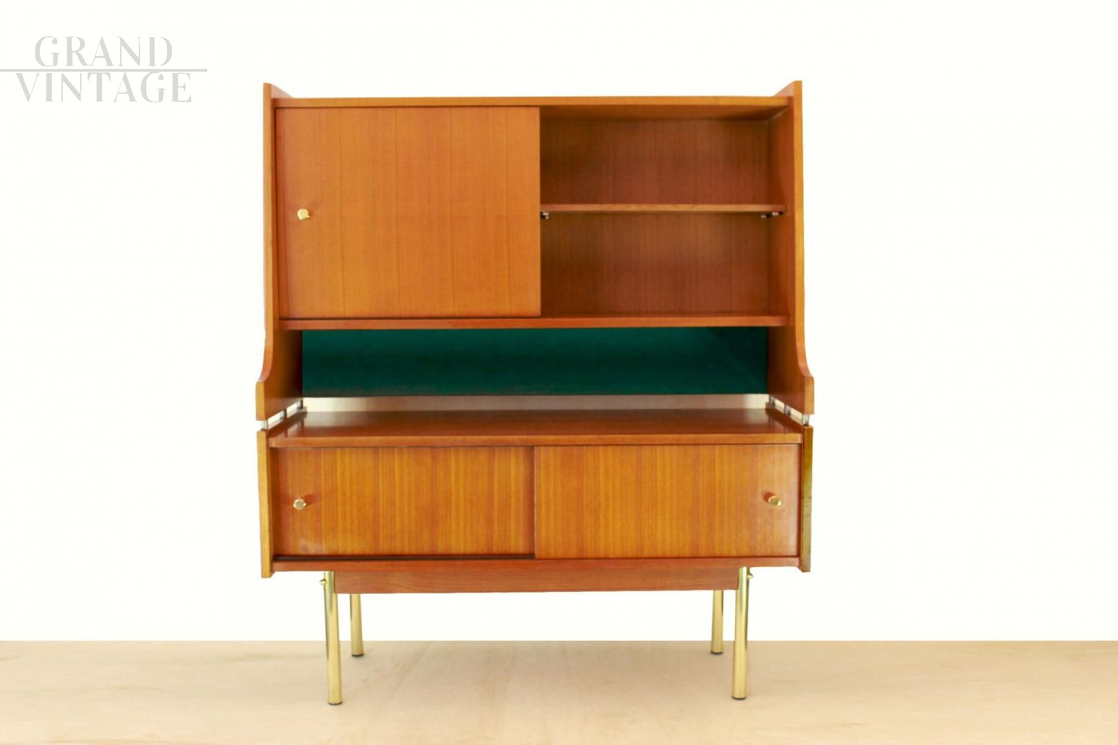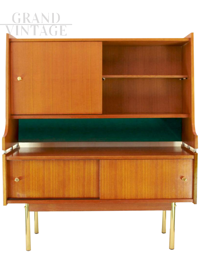 Credenza scandinava degli anni '50 in massello di teak e struttura in ottone. Struttura in legno pulita e lucidata, più piccoli interventi di restauro. In condizioni eccellenti con solo piccoli segni del tempo. Spedizione assicurata per Italia ed estero. Rimborso totale prezzo acquisto in caso di danni o non consegna.