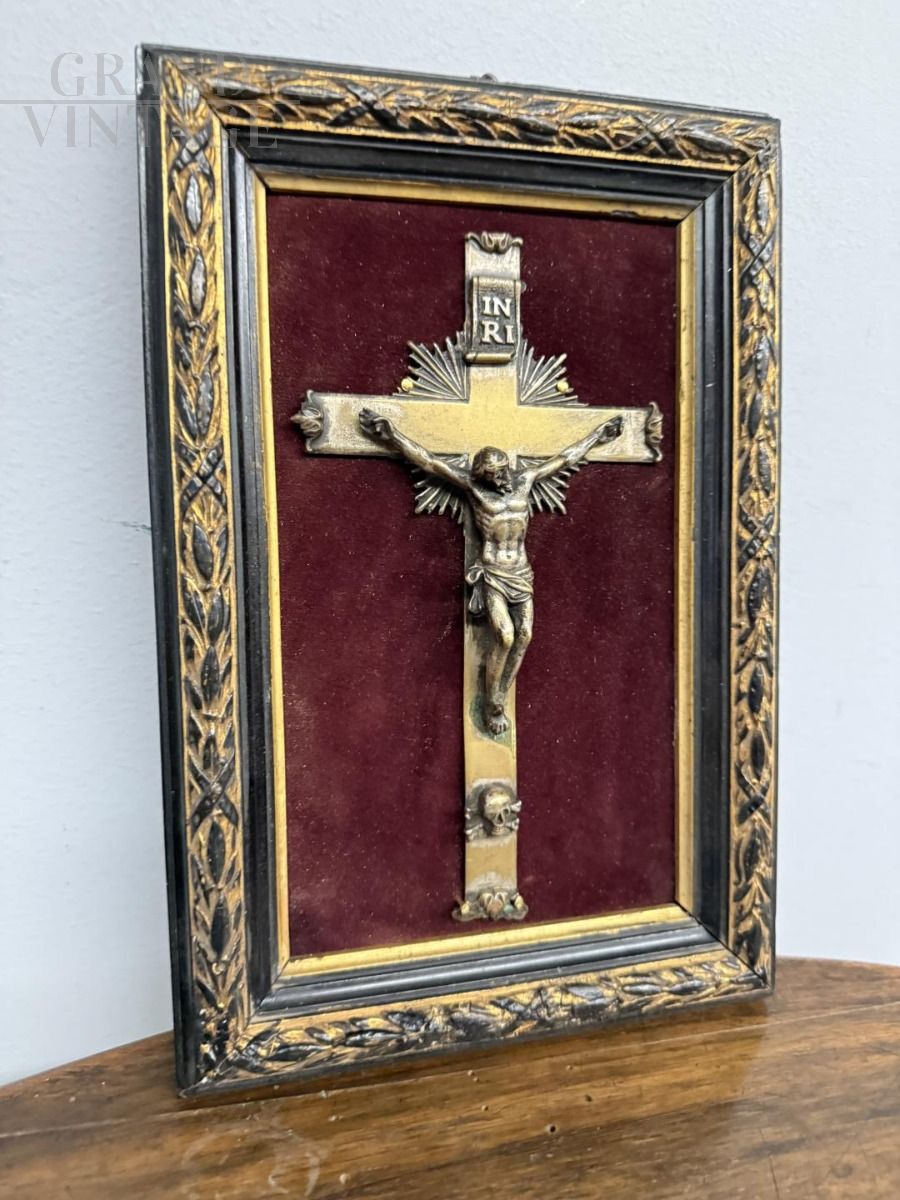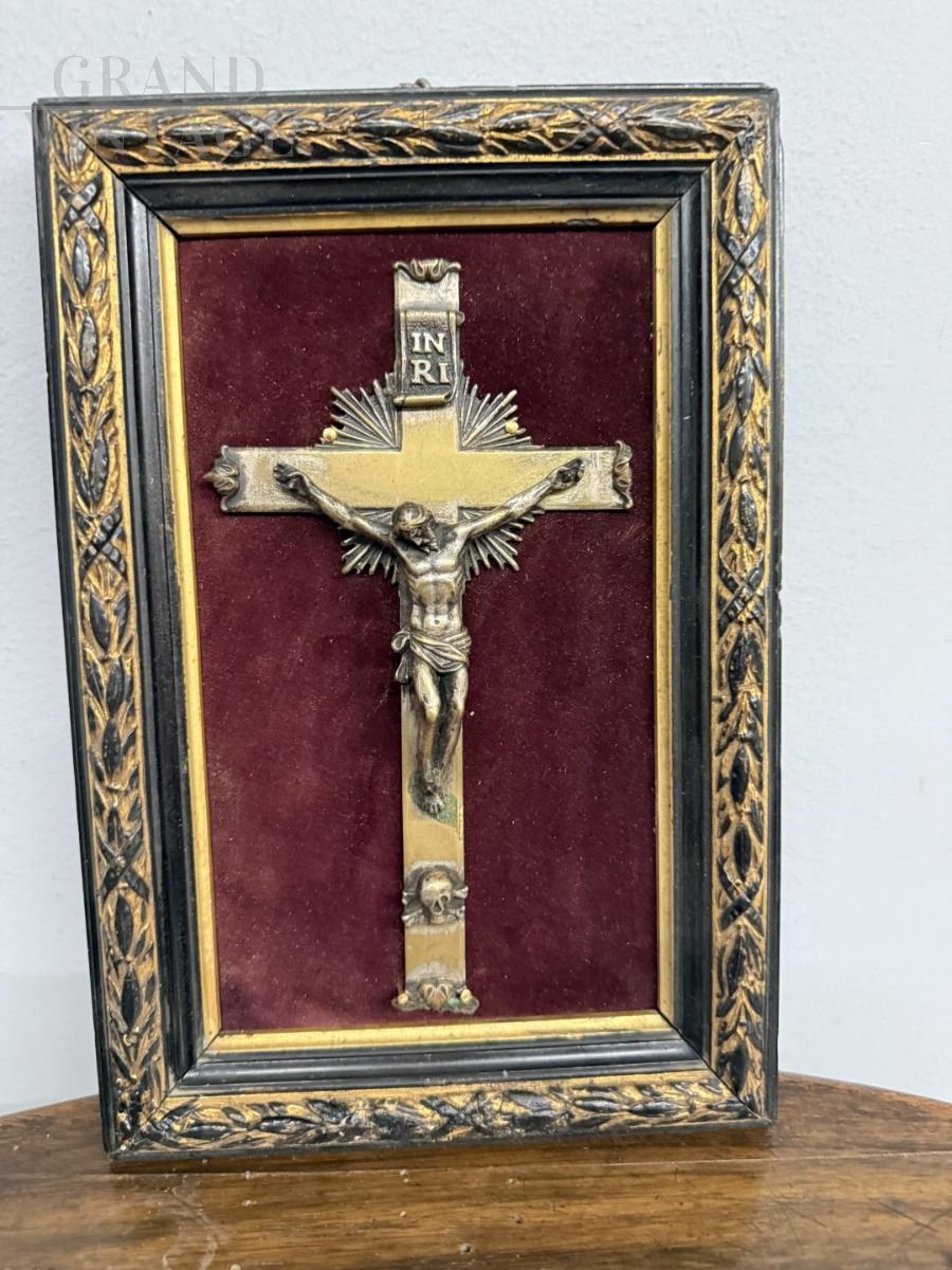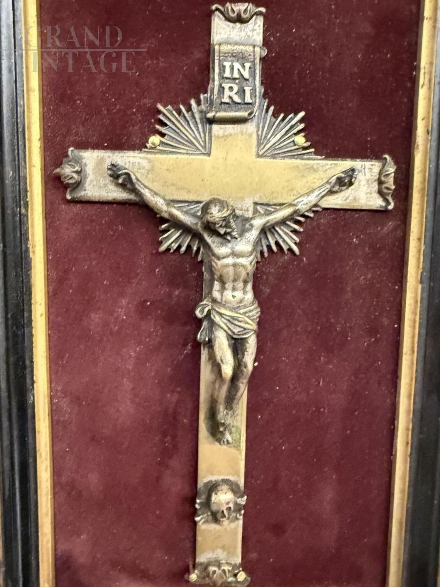 Crocefisso antico in bronzo del XIX secolo con cornice