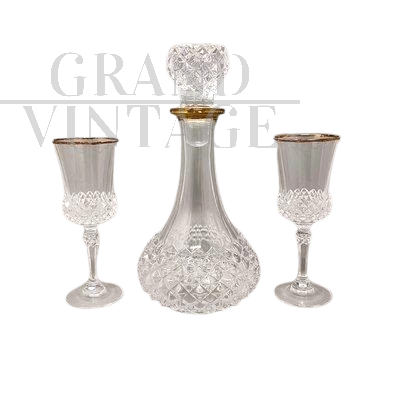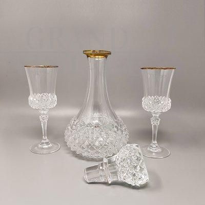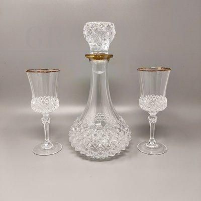 Decanter in cristallo con 2 bicchieri, Italia anni '60