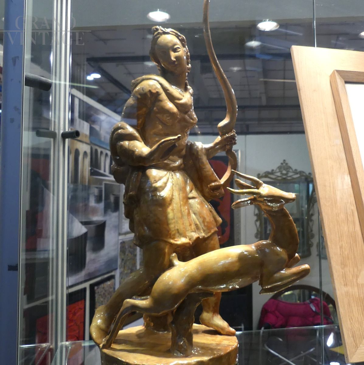 Diana Cacciatrice - scultura di Pietro Melandri in ceramica smaltata a lustro, anni '30 / '40