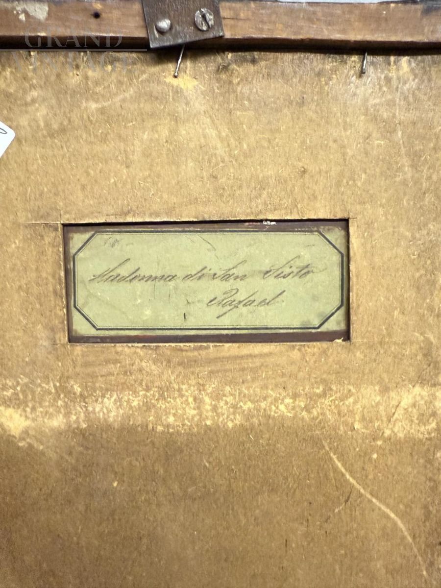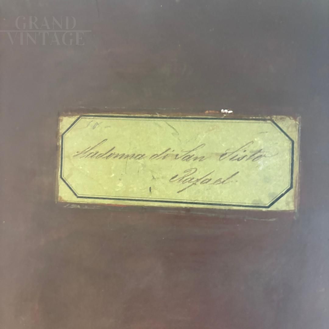 Dipinto antico con Madonna di San Sisto, olio su rame dell'800