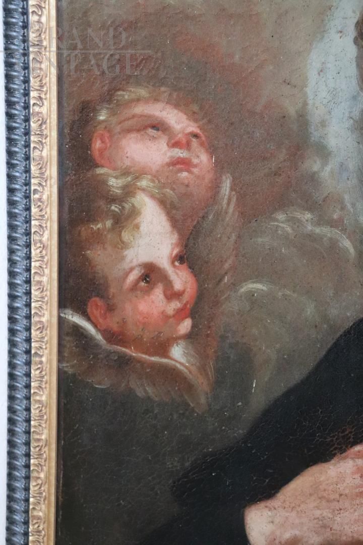 Bellissimo dipinto antico raffigurante San Francesco Saverio, arte sacra di scuola italiana del XVIII secolo, olio su tela. Ottima qualità pittorica e grande attenzione ai dettagli, non firmato. Il soggetto religioso Francisco de Jasso Azpilicueta Atondo y Aznares de Javier, comunemente conosciuto con il nome italianizzato di Francesco Saverio, fu un gesuita e missionario spagnolo, proclamato santo nel 1622 da papa Gregorio XV. Fu un pioniere nella diffusione del cristianesimo in Asia. Il dipinto è venduto con bella cornice in legno ebanizzato e profilo dorato contemporanea, non coeva. Ottimo prezzo trattabile.