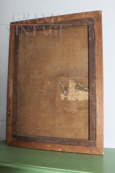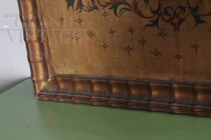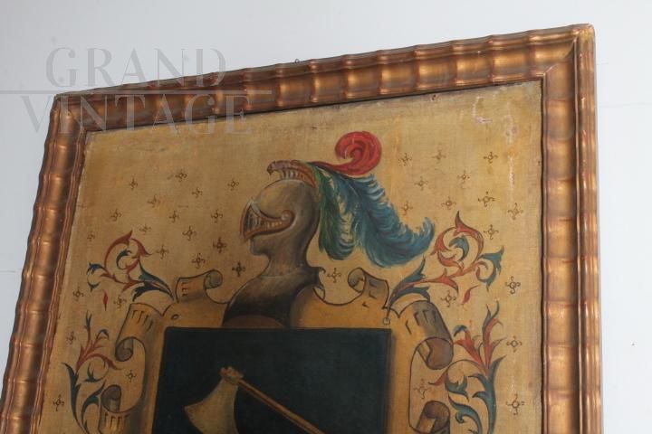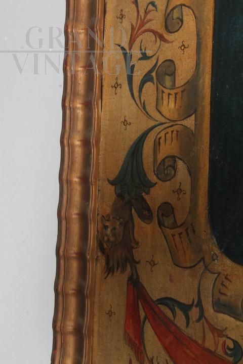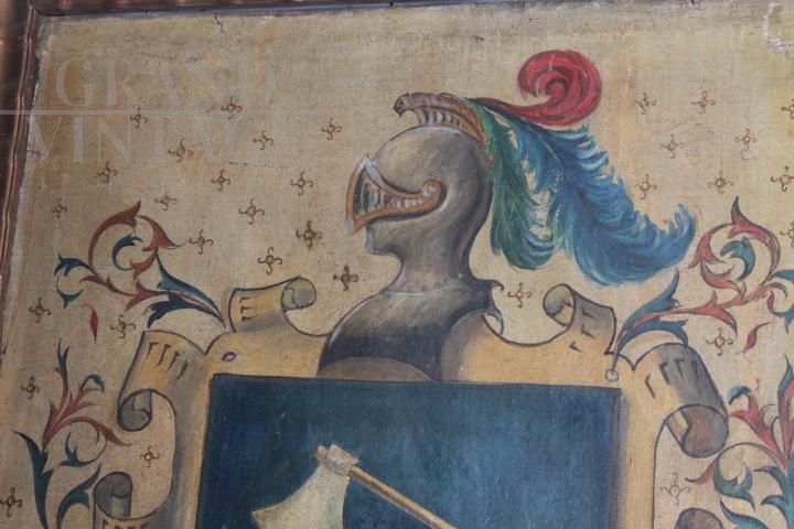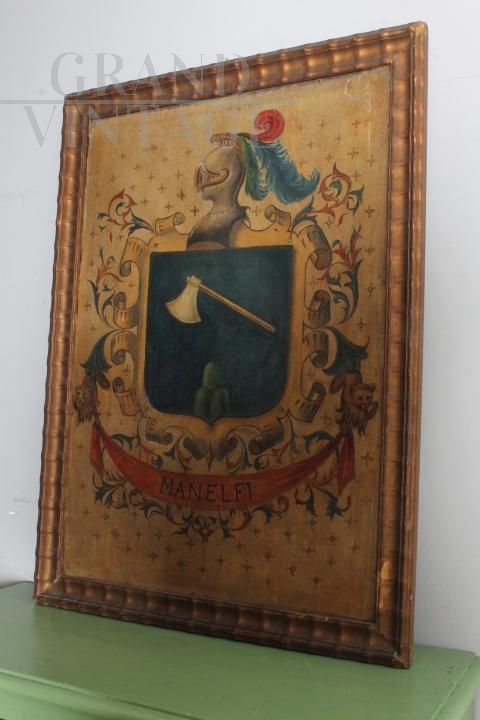 Dipinto antico olio su tela raffigurante lo stemma nobiliare della famiglia Manelfi, originale del XVIII secolo, in prima patina.