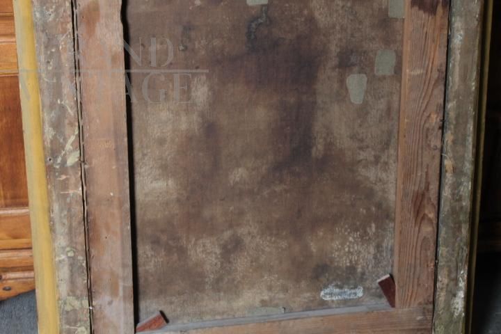 Dipinto antico olio su tela con Falconiere, in cornice a foglia oro