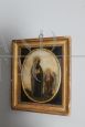 Bellissimo dipinto antico del XVII secolo a tema religioso raffigurante Santa Francesca Romana con angelo su pietra di onice, un supporto molto raro e che dona al dipinto una luce delicata particolare. Il dipinto è completo di cornice antica dorata a mecca di epoca successiva. In ottime condizioni, non necessita di restauro.