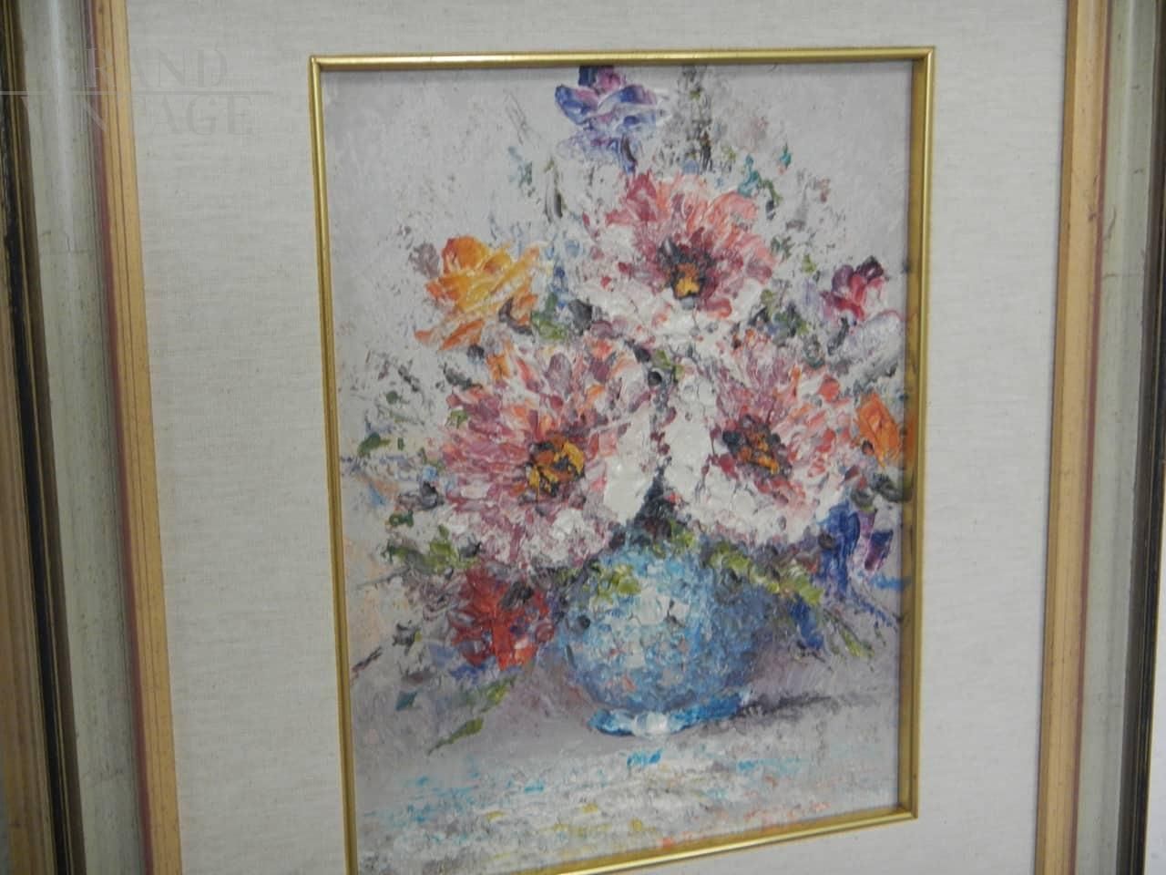 Dipinto con vaso di fiori, olio su tavola anni '70
