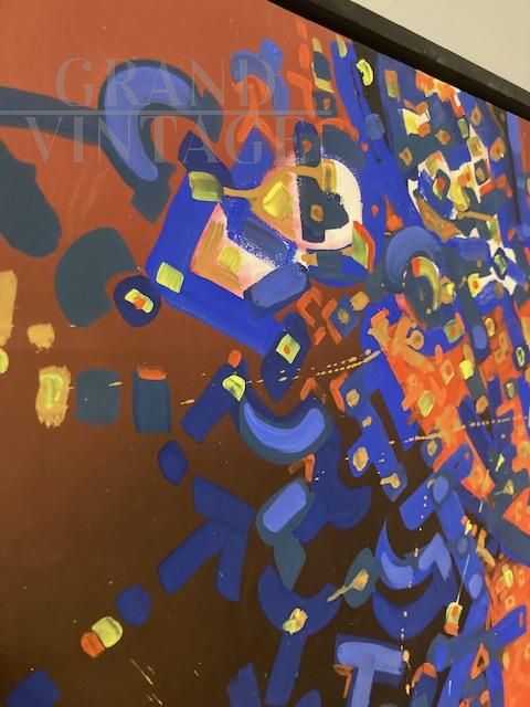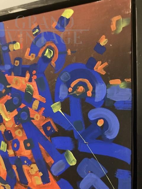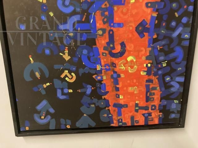 Dipinto contemporaneo astratto in smalti policromi su tela