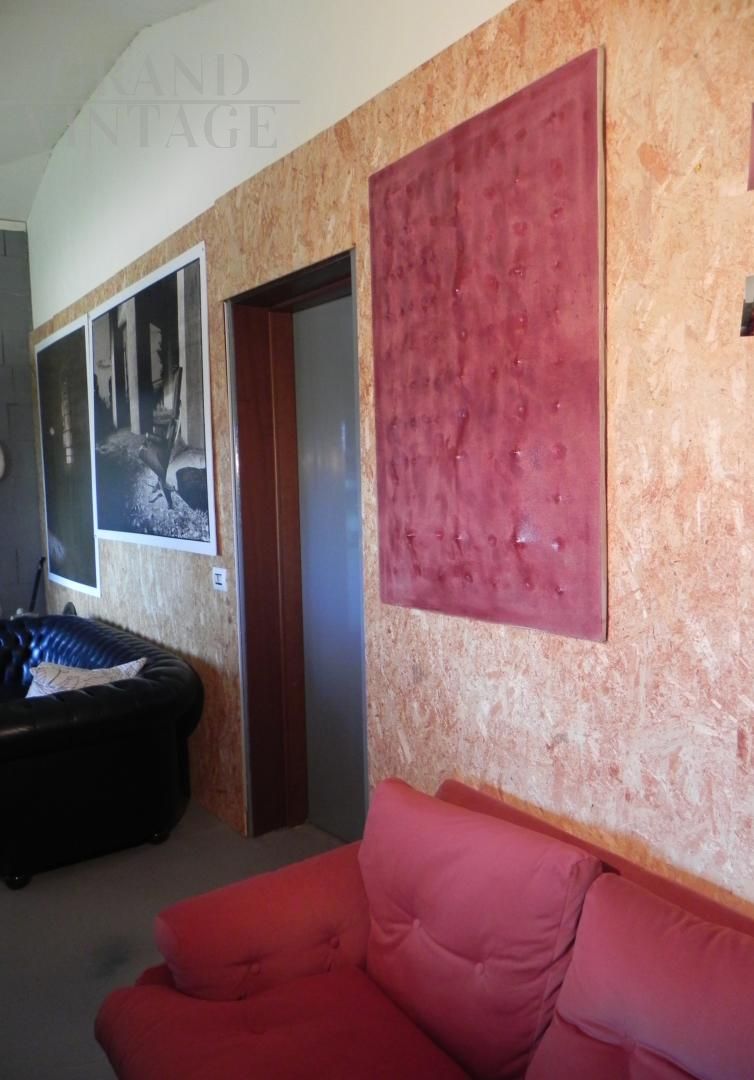 Pannello in tela con superficie estroflessa e dipinta in colore bordeaux, ricorda i quadri di Enrico Castellani, realizzato in Italia negli anni '90 circa. L'opera non presenta firme. Il pannello non ha ne difetti nè strappi.