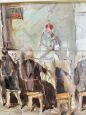 Dipinto raffigurante frati che dipingono nell'atelier, olio su tela del XX secolo firmato Grilli, misure 63 x 71 cm.