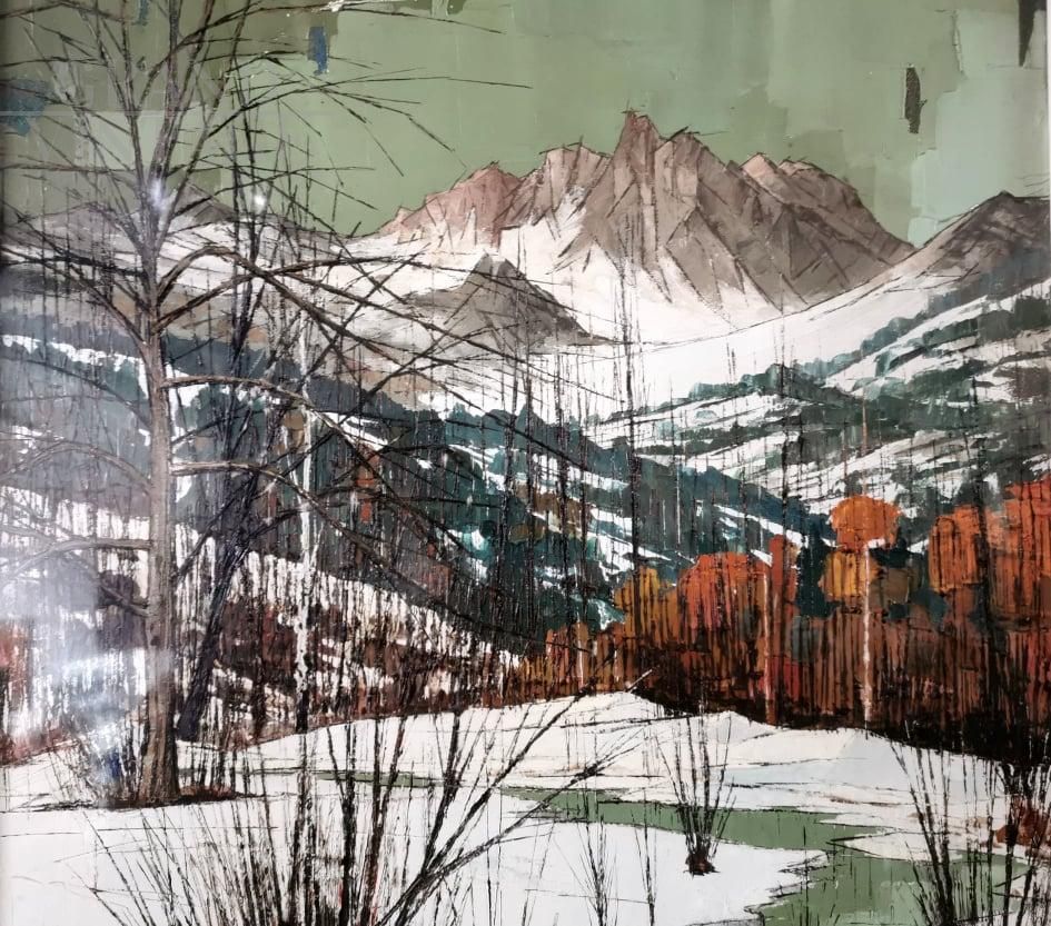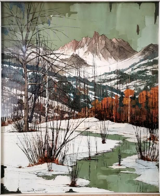 Dipinto di Renzo Ravazzotti, Neve a Bardonecchia, olio su tela, 1965
