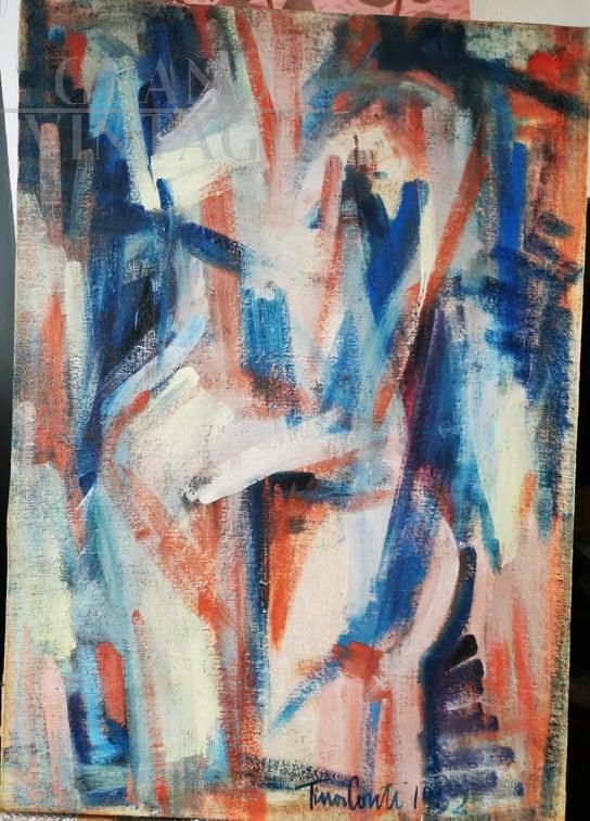 Dipinto di Tina Conti, soggetto astratto, olio su tela del 1962, Milano
